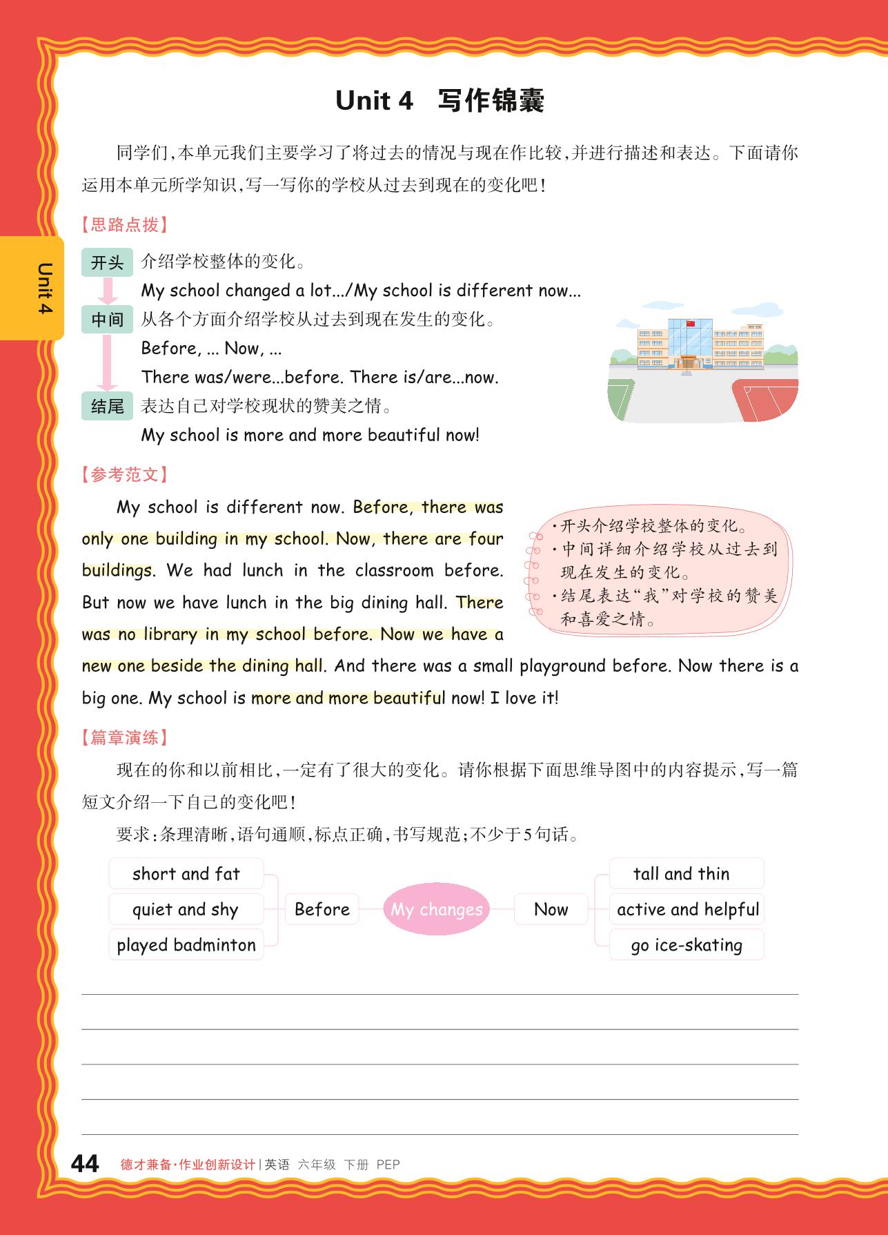 2024春下册六年级英语人教PEP版 Unit 4 写作锦囊