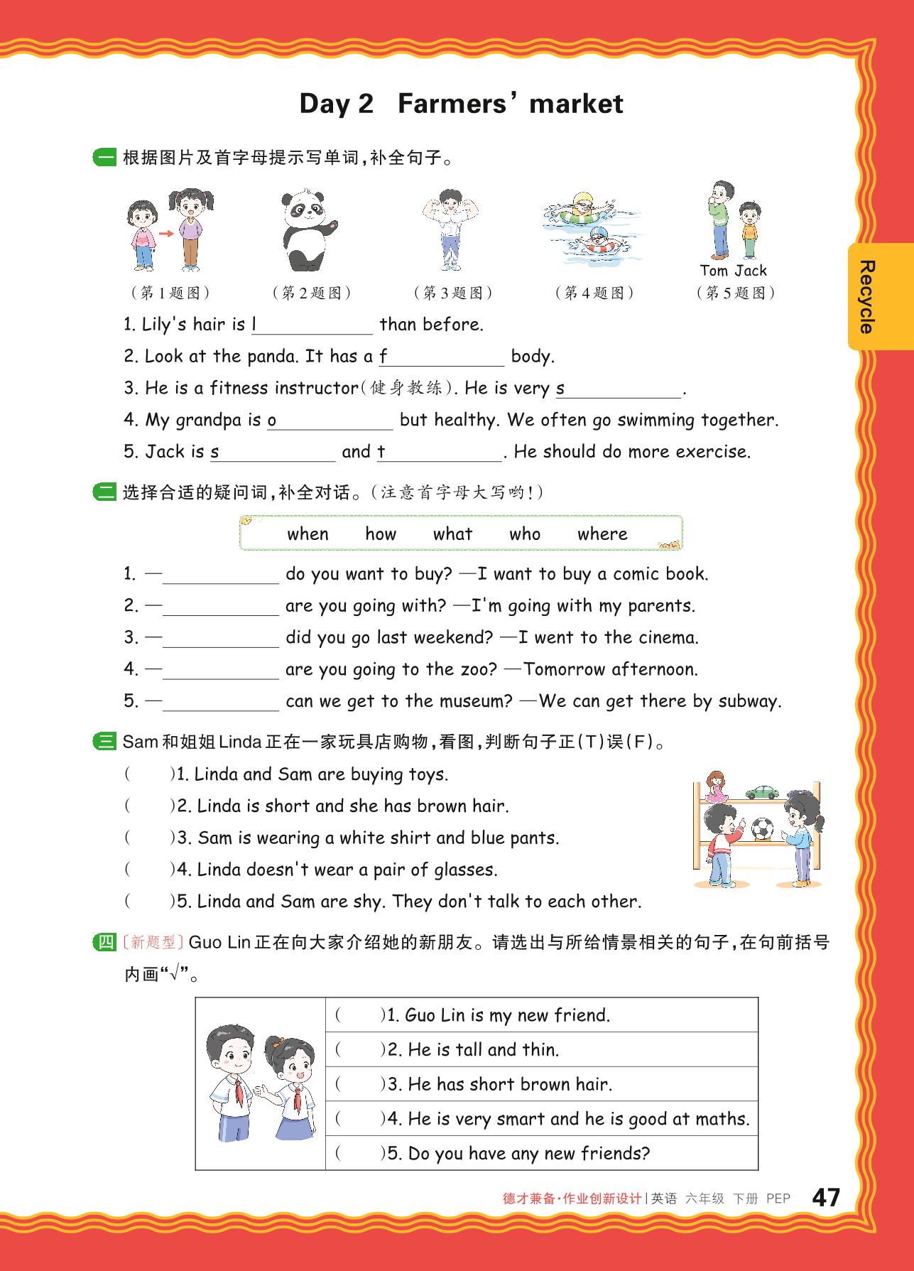 2024春下册六年级英语人教PEP版 Recycle—Day 2 Farmers’ market