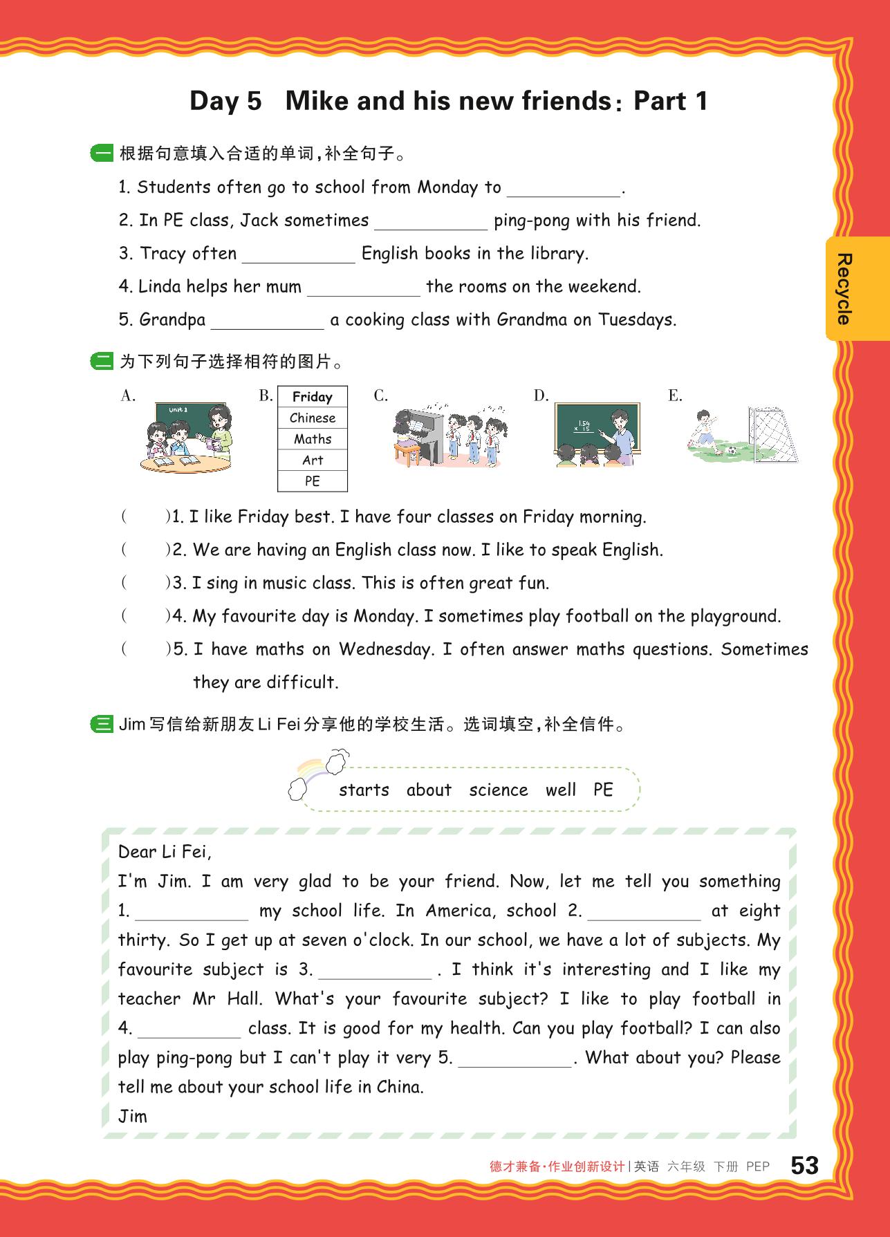 2024春下册六年级英语人教PEP版 Recycle—Day 5 Mike and his new friends:Part 1_R240124114647410