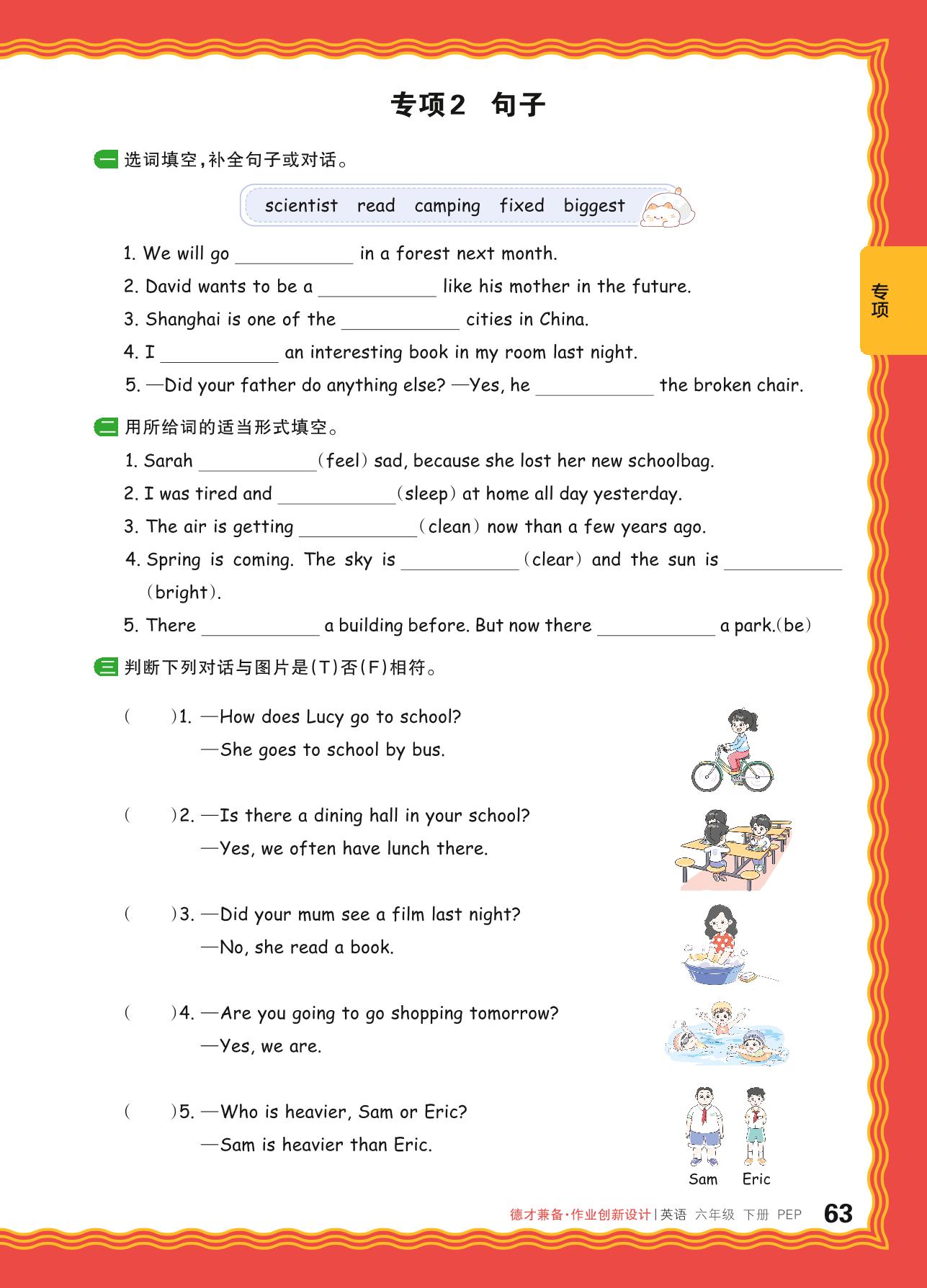 2024春下册六年级英语人教PEP版 期末专项卷DC版·句子【2】