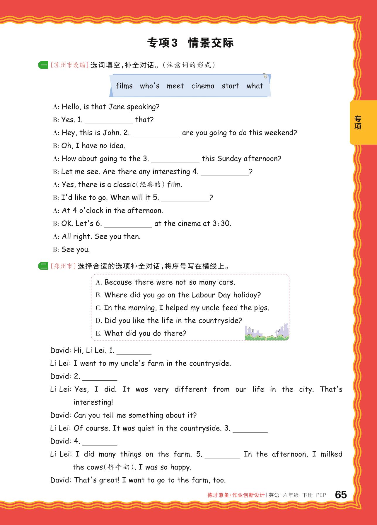 2024春下册六年级英语人教PEP版 期末专项卷DC版·情景交际【3】
