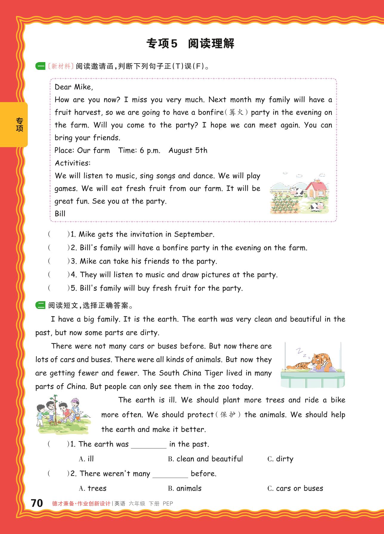 2024春下册六年级英语人教PEP版 期末专项卷DC版·阅读理解【5】