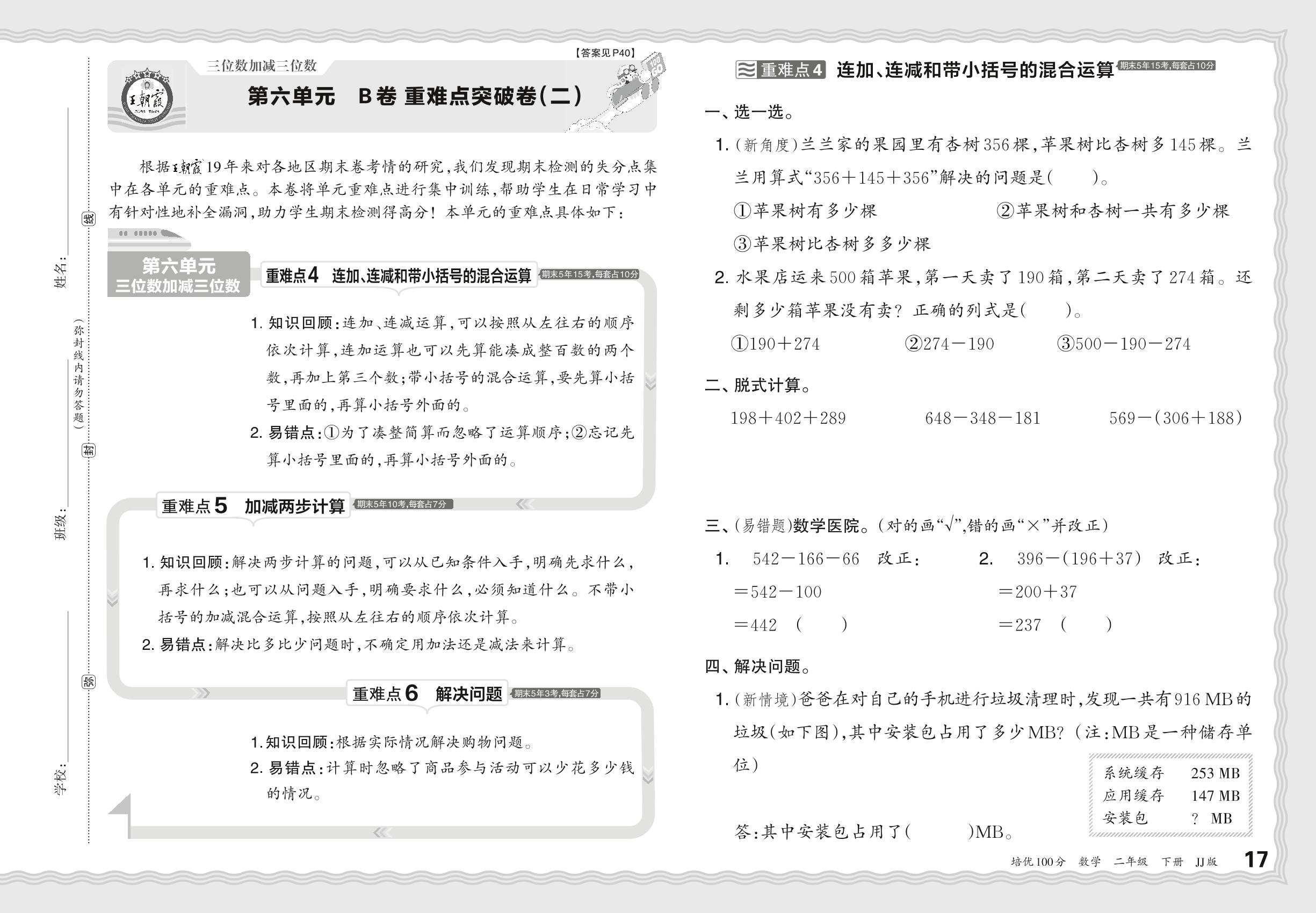 2024春下册二年级数学冀教版 第六单元 B卷 重难点突破卷(二)