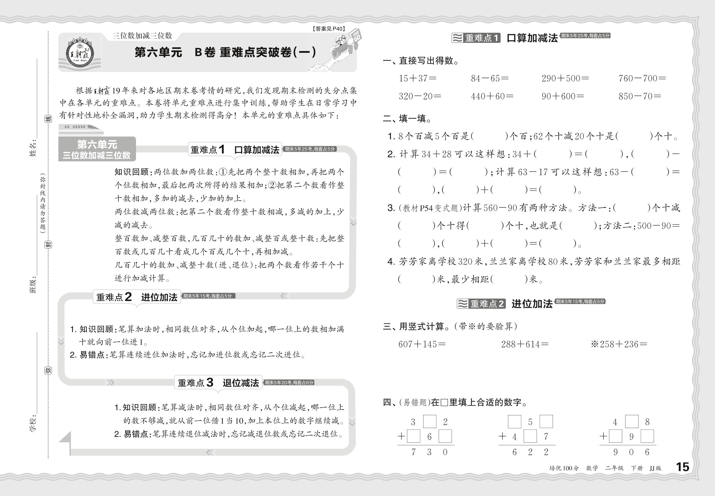2024春下册二年级数学冀教版 第六单元 B卷 重难点突破卷(一)