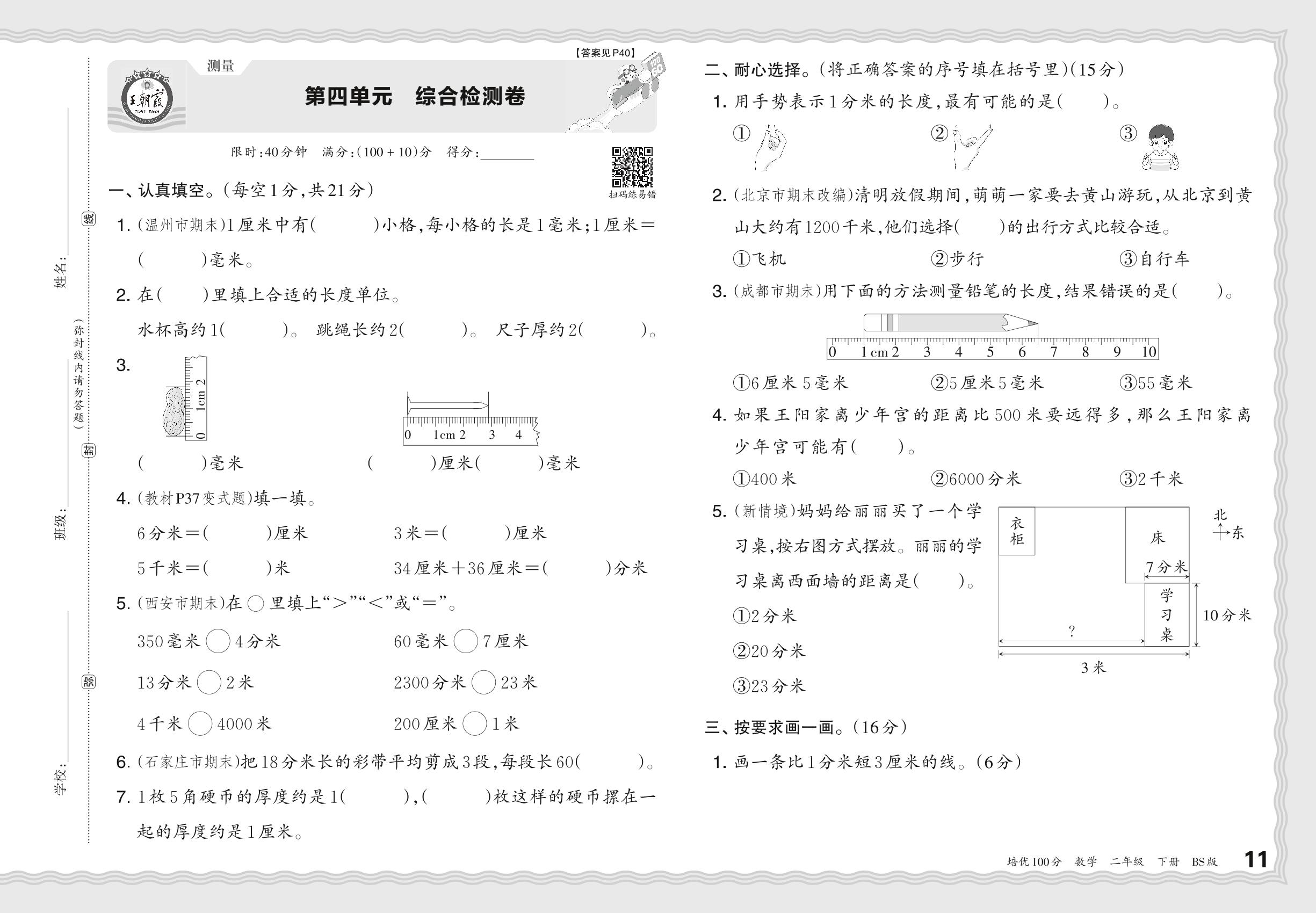 2024春下册二年级数学北师版 第四单元 综合检测卷