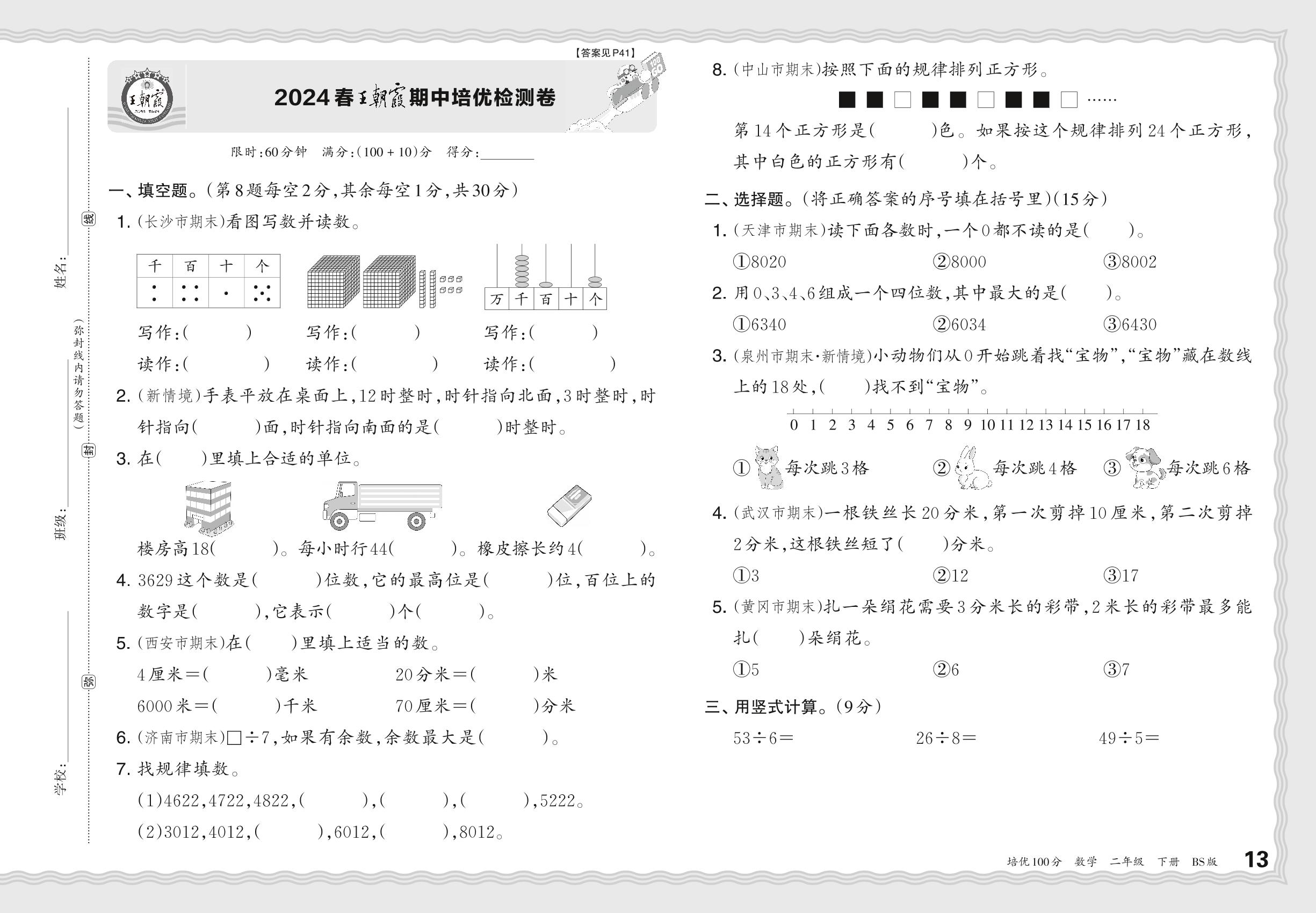 2024春下册二年级数学北师版 王朝霞期中培优检测卷