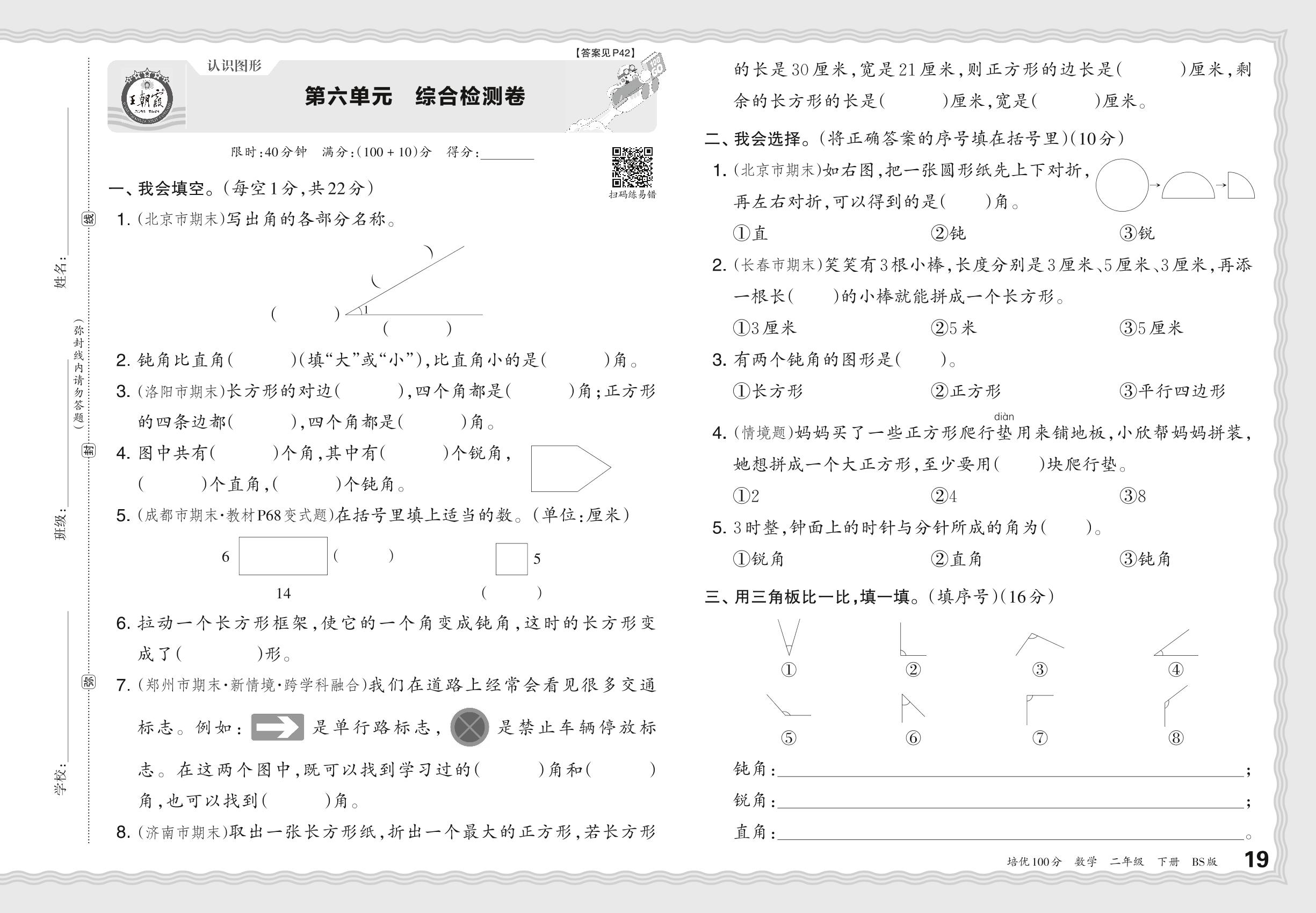 2024春下册二年级数学北师版 第六单元 综合检测卷