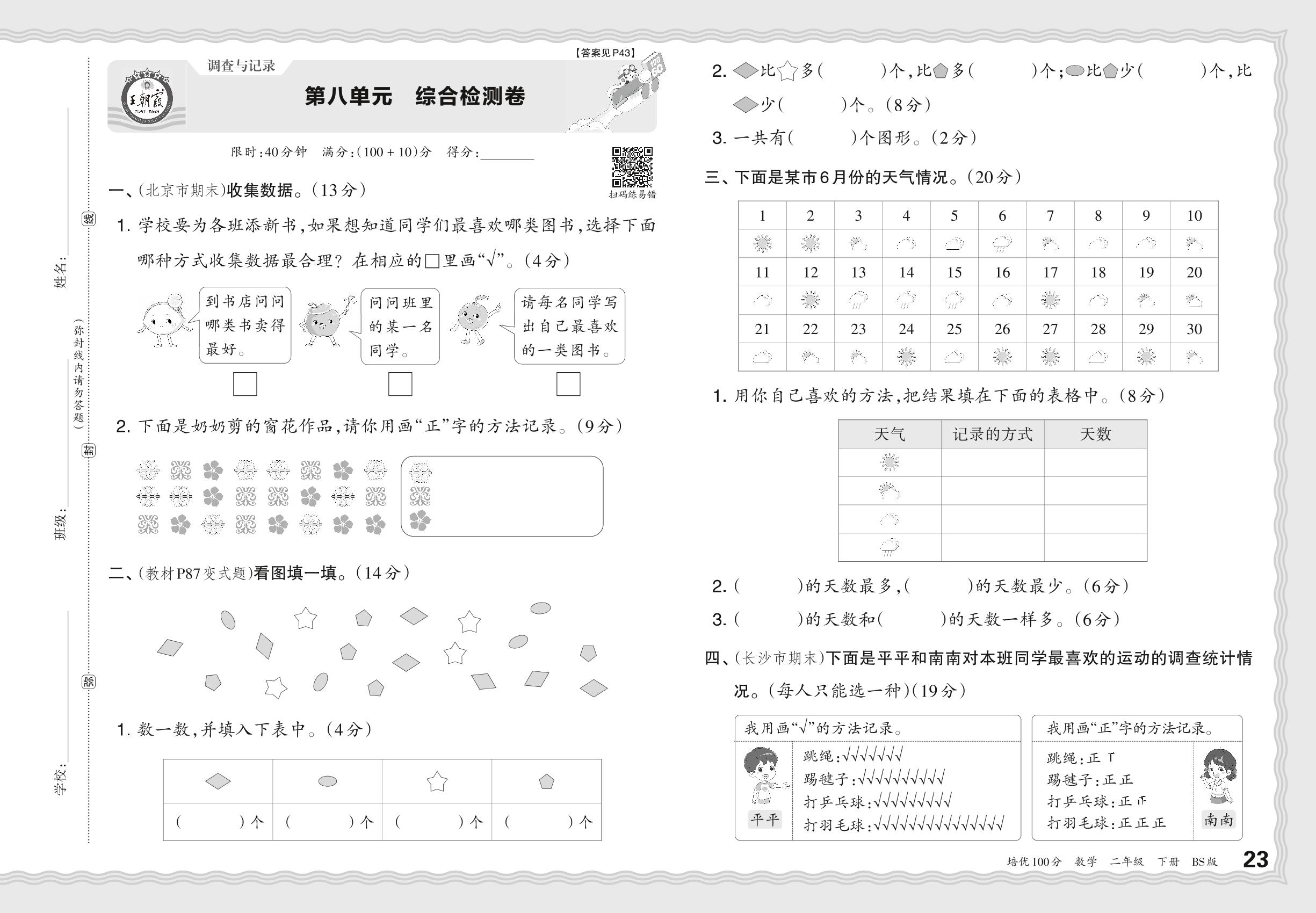 2024春下册二年级数学北师版 第八单元 综合检测卷