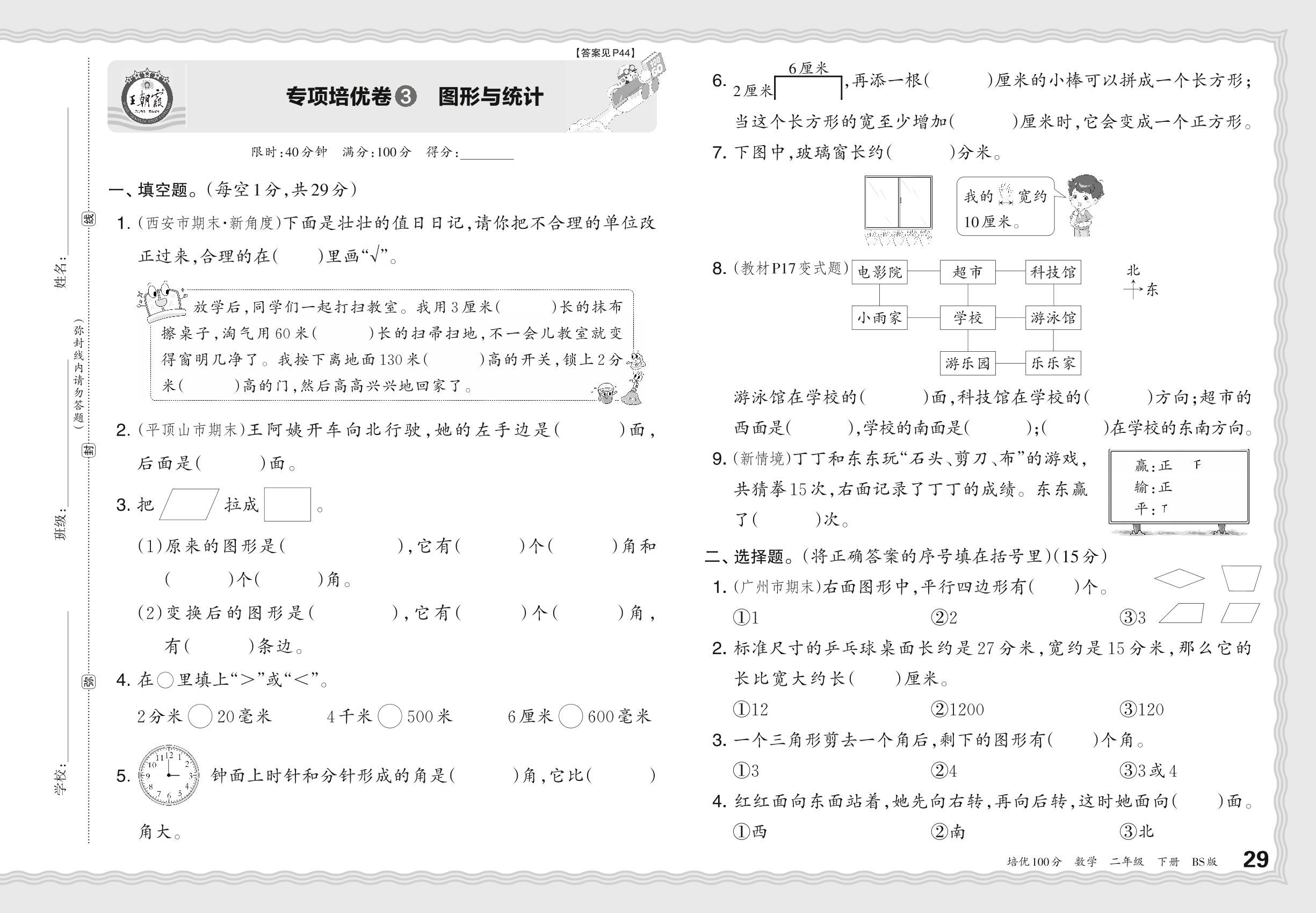 2024春下册二年级数学北师版 期末专项卷PY版·图形与统计【3】