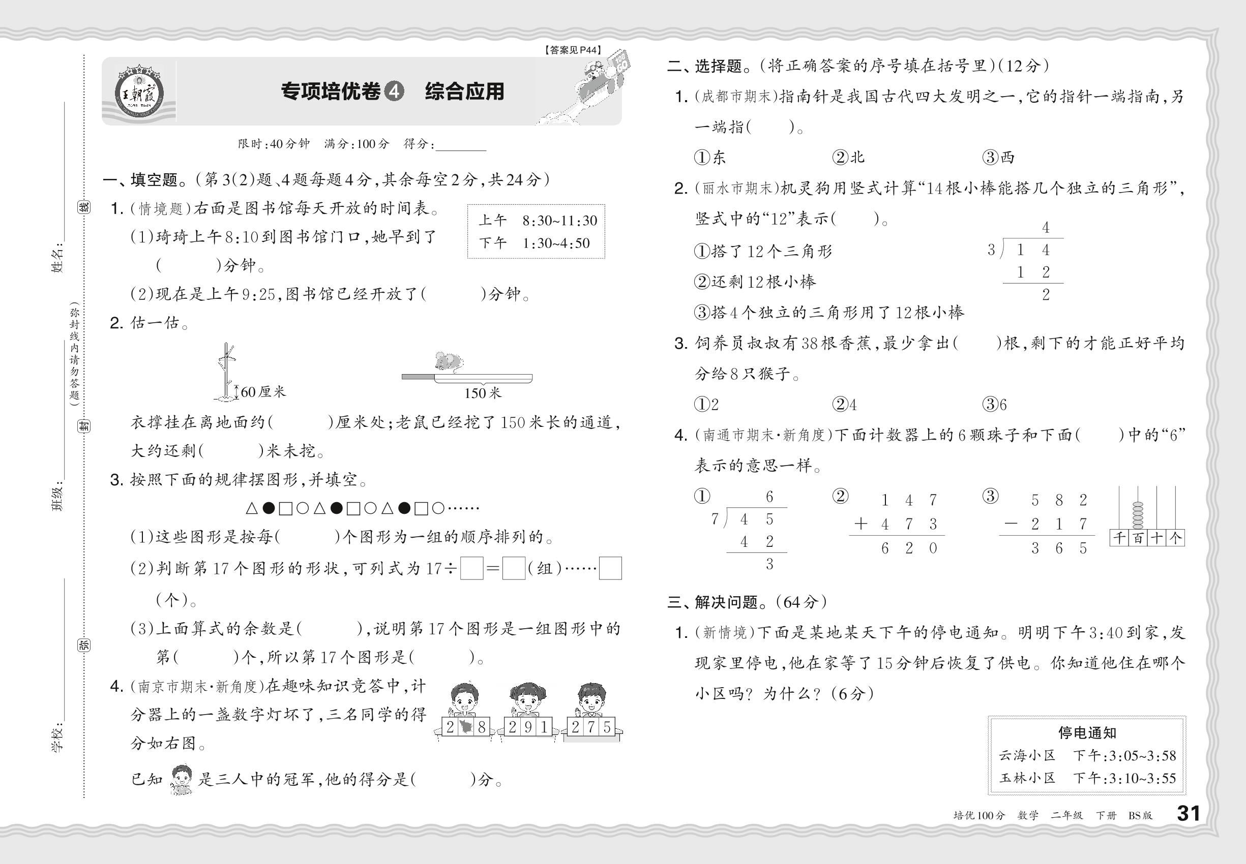2024春下册二年级数学北师版 期末专项卷PY版·综合应用【4】