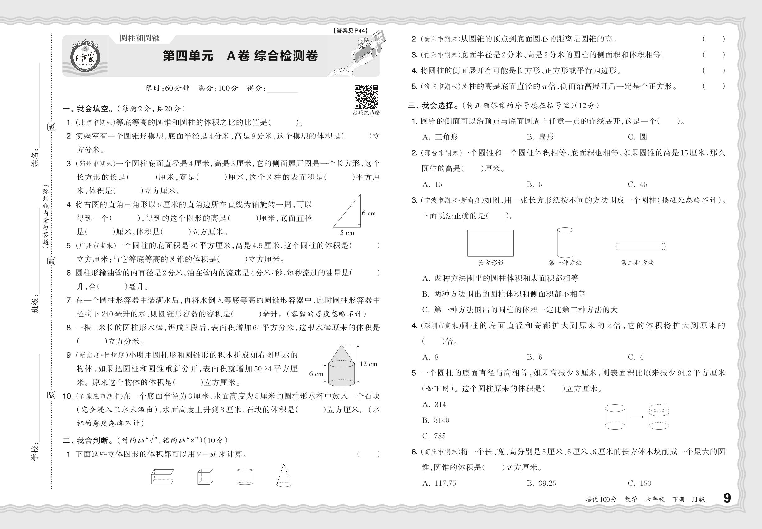 2024春下册六年级数学冀教版 第四单元 A卷 综合检测卷