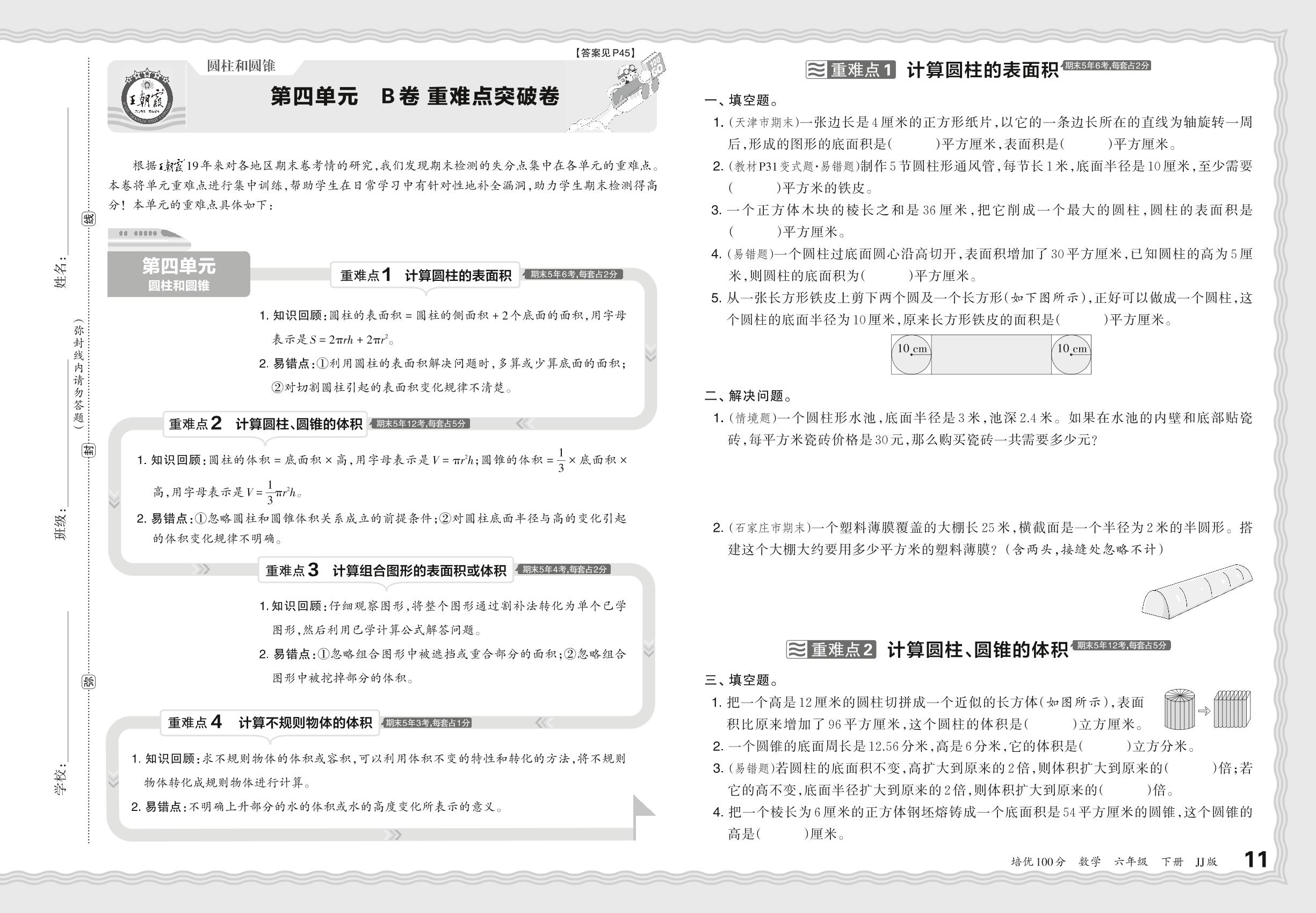 2024春下册六年级数学冀教版 第四单元 B卷 重难点突破卷