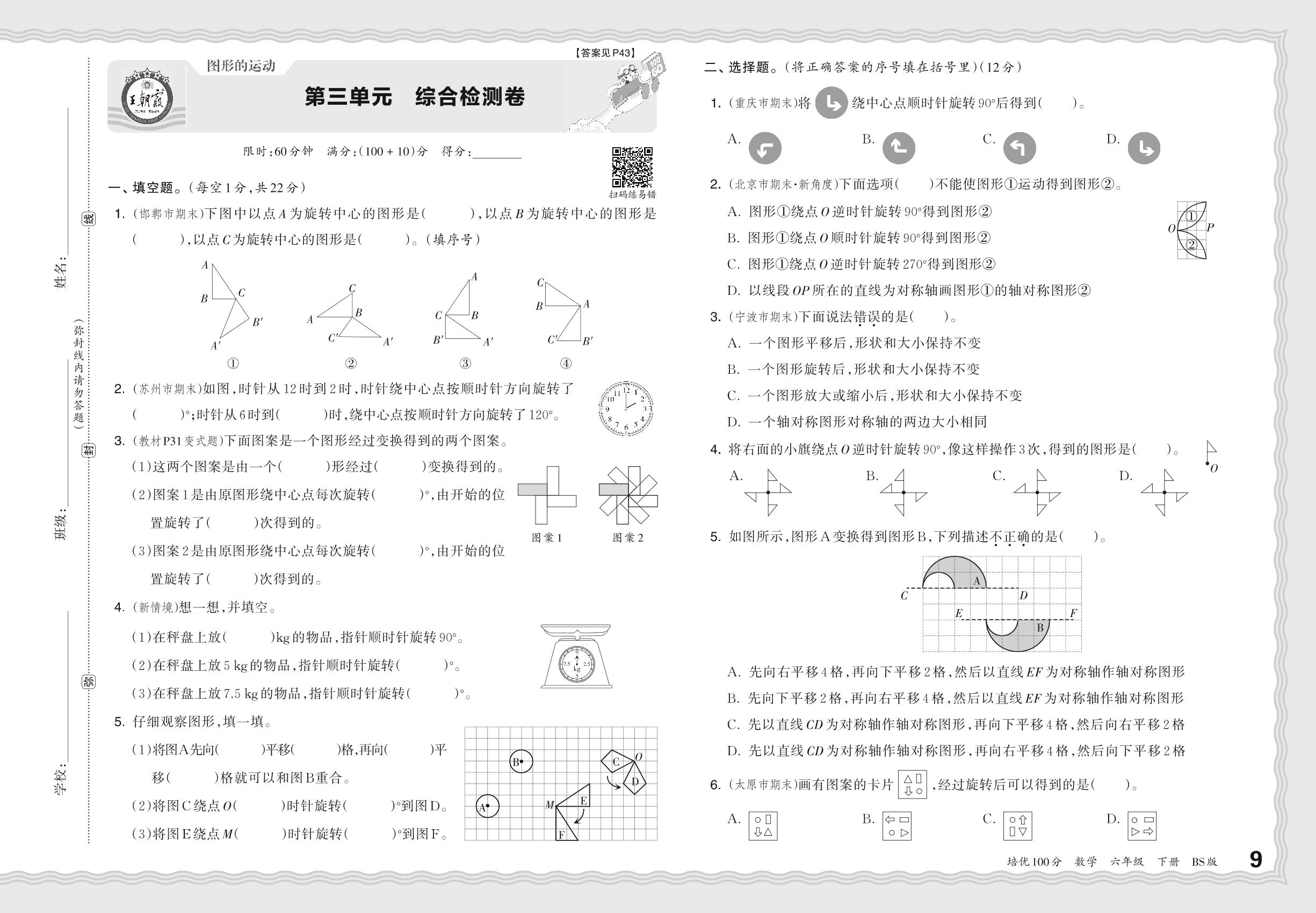 2024春下册六年级数学北师版 第三单元 综合检测卷