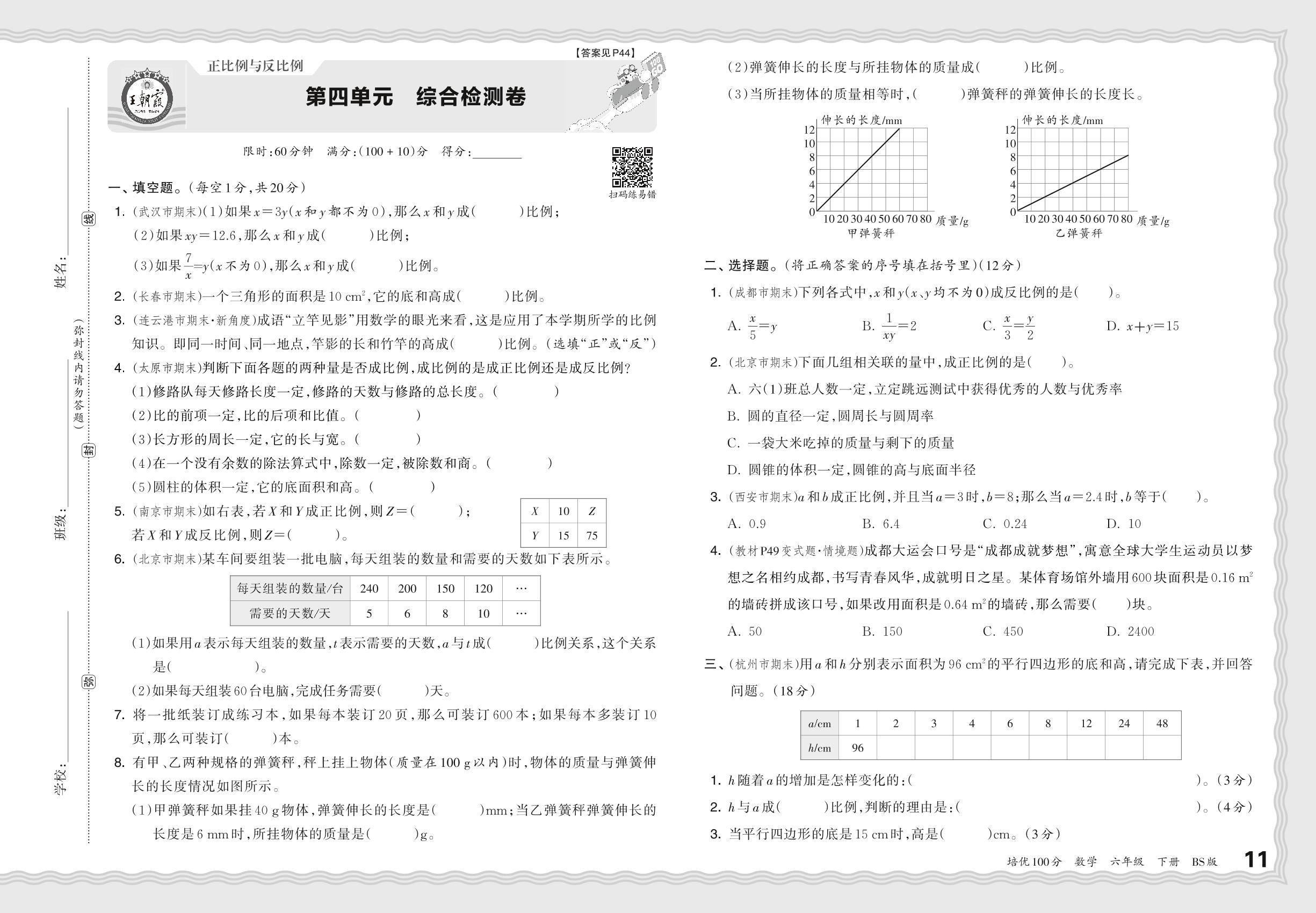 六年级数学北师版下册单元卷