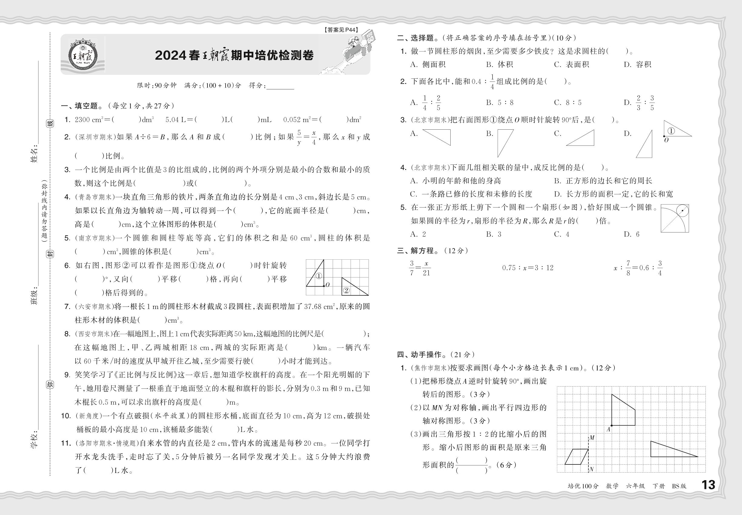 2024春下册六年级数学北师版 王朝霞期中培优检测卷