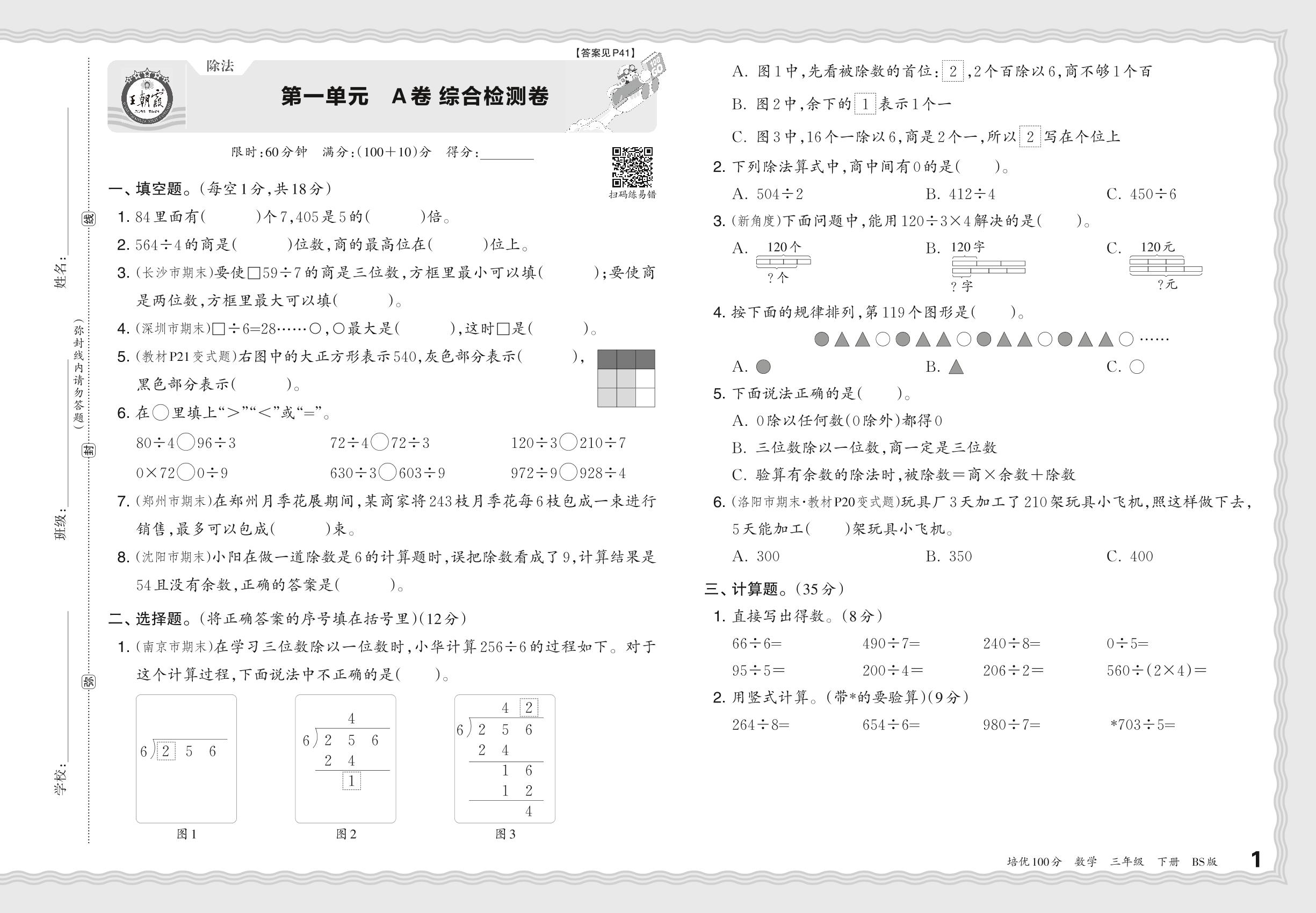 2024春下册三年级数学北师版 第一单元 A卷 综合检测卷