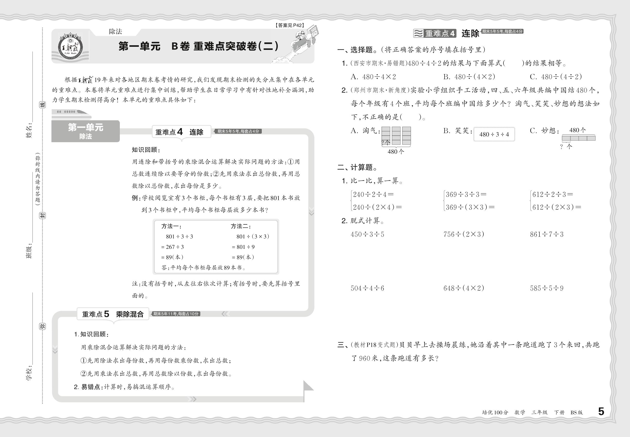2024春下册三年级数学北师版 第一单元 B卷 重难点突破卷(二)