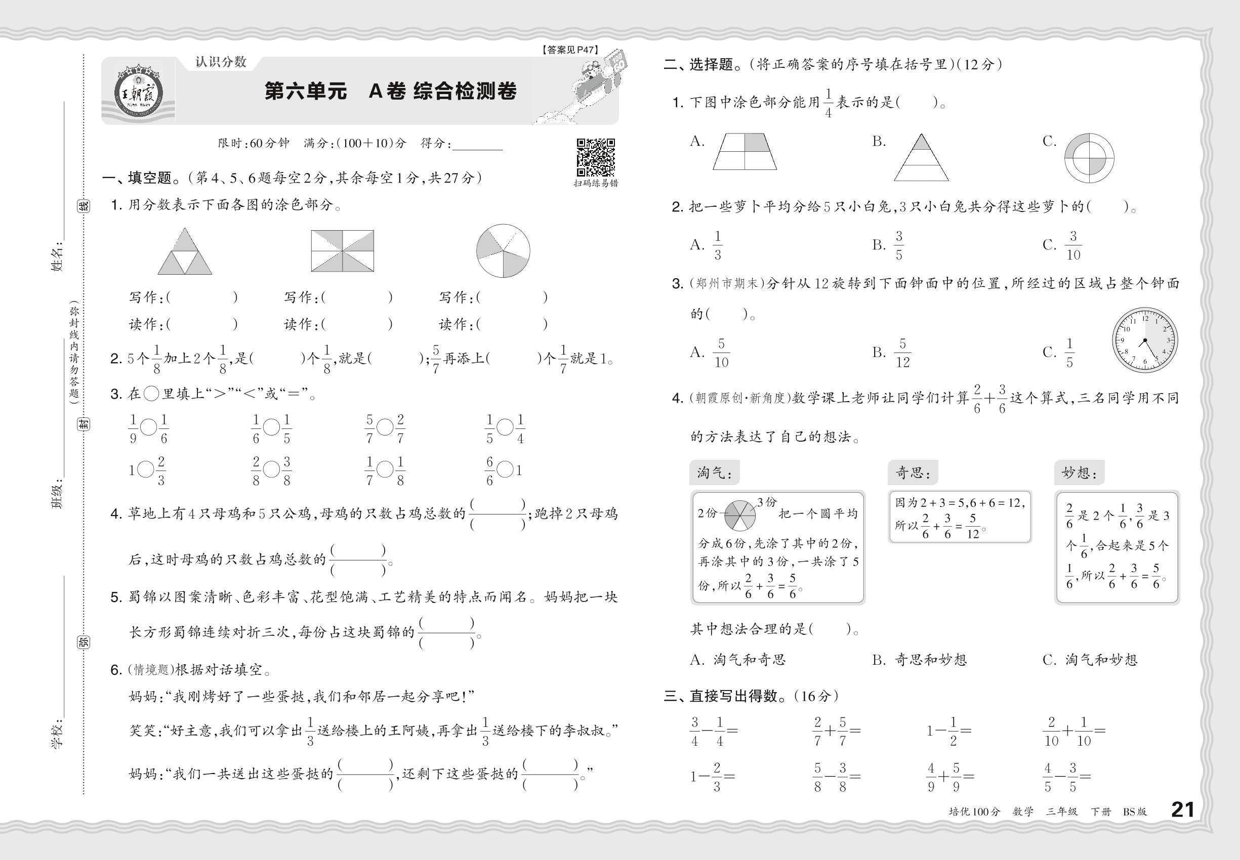 2024春下册三年级数学北师版 第六单元 A卷 综合检测卷