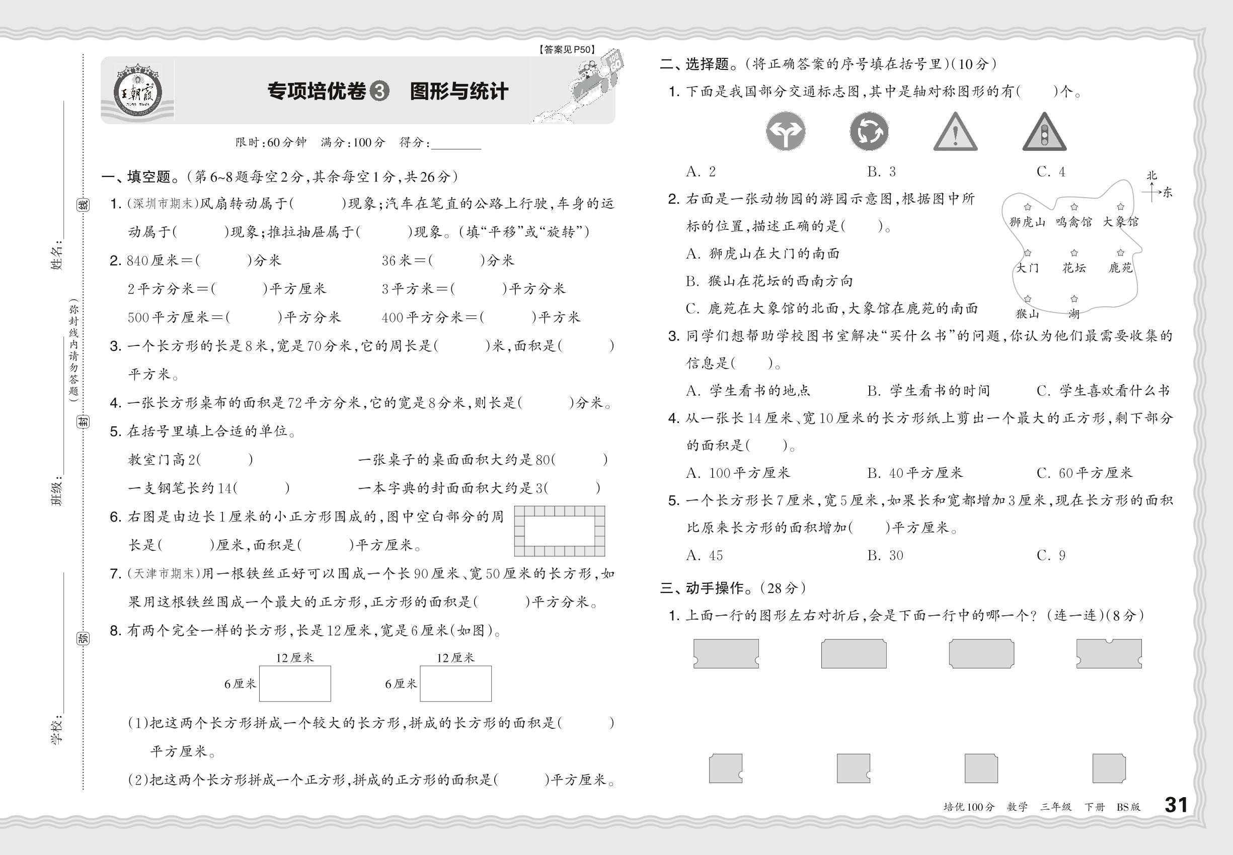 2024春下册三年级数学北师版 期末专项卷PY版·图形与统计【3】