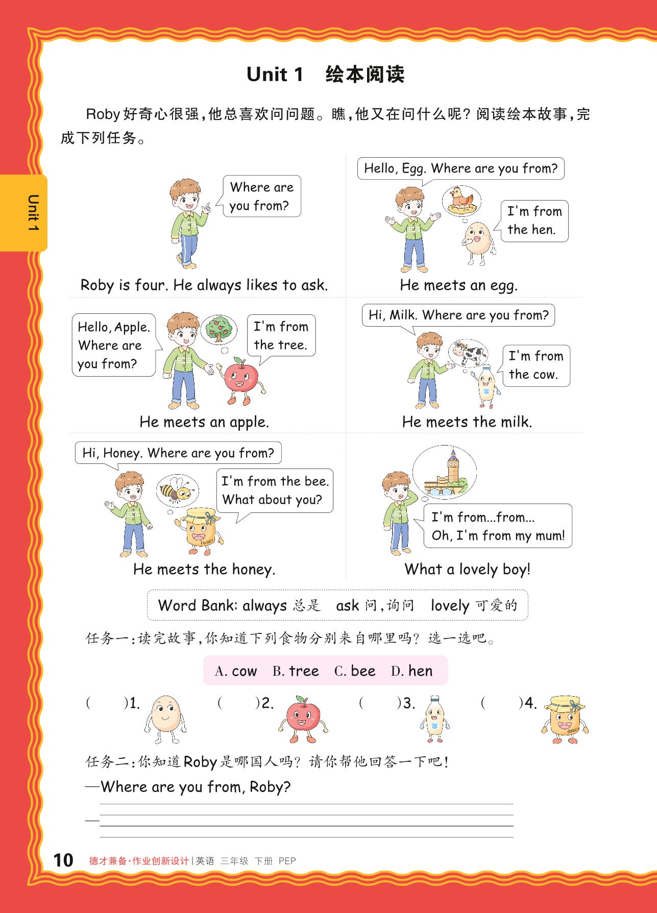 2024春下册三年级英语人教PEP版 Unit 1 绘本阅读