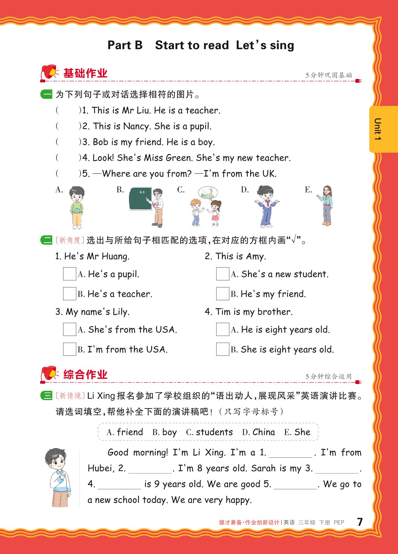 2024春下册三年级英语人教PEP版 Unit 1—Part B Start to read Let’s sing