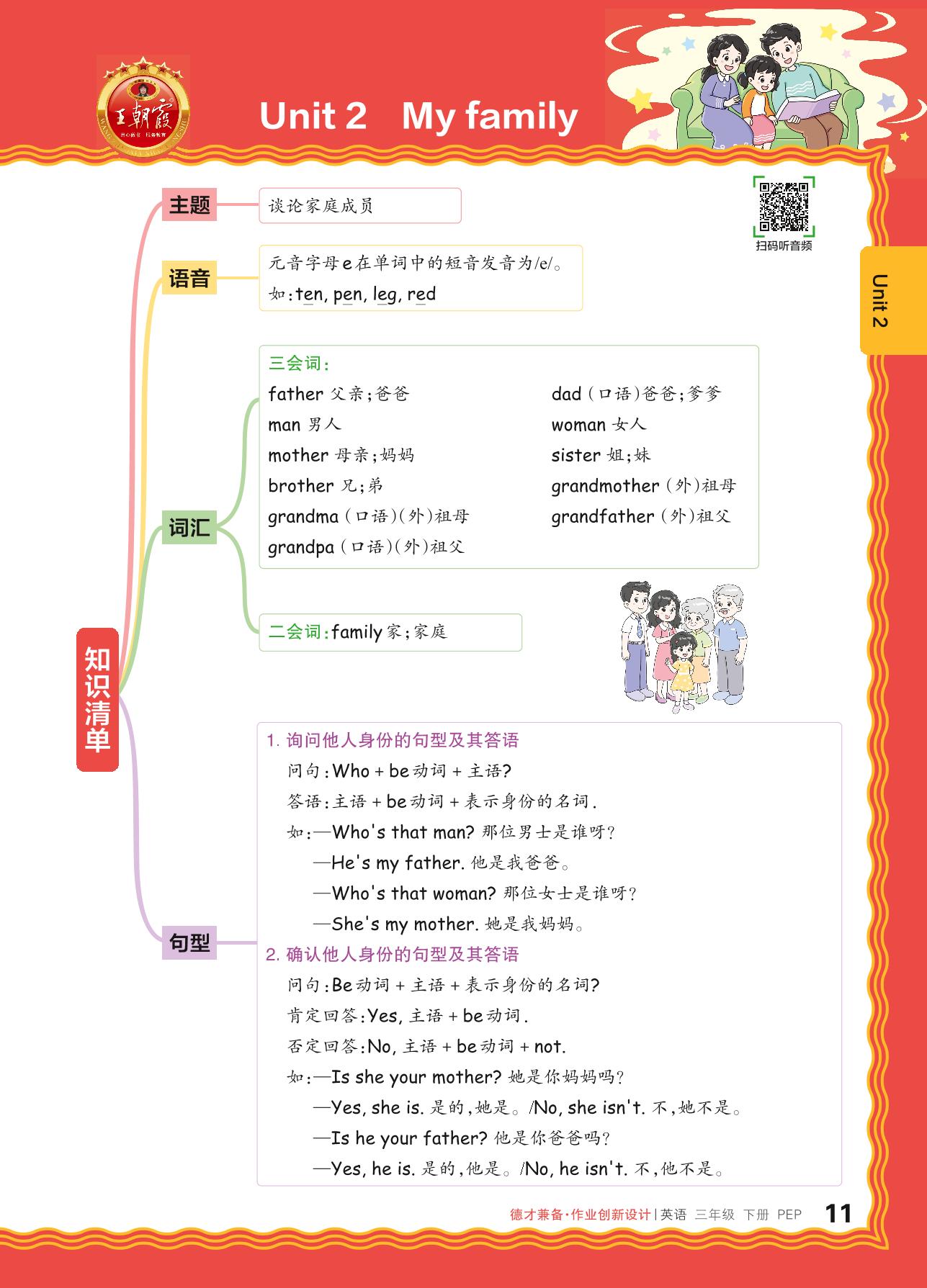 2024春下册三年级英语人教PEP版 Unit 2 知识清单
