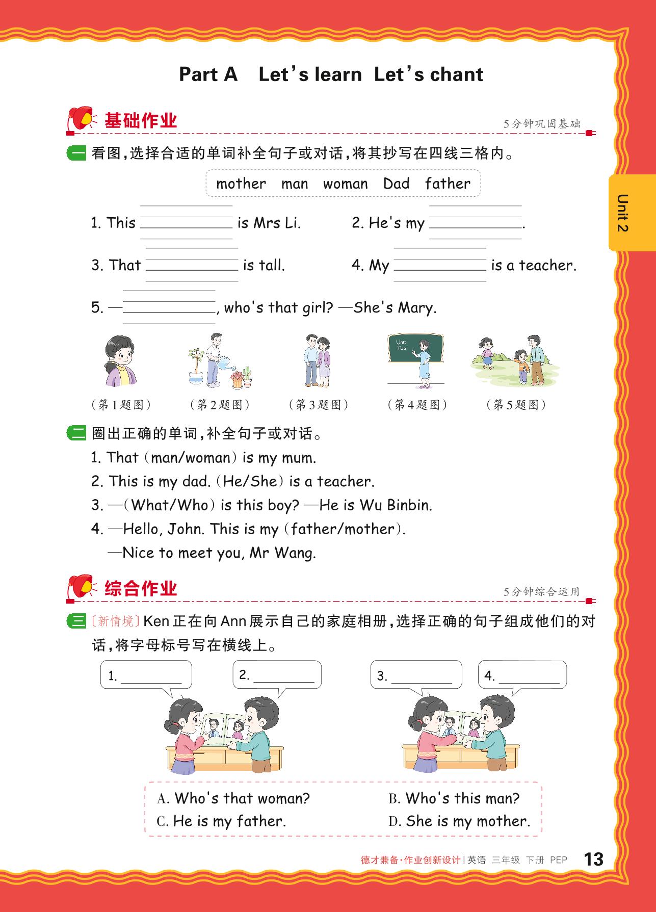 2024春下册三年级英语人教PEP版 Unit 2—Part A Let’s learn Let’s chant