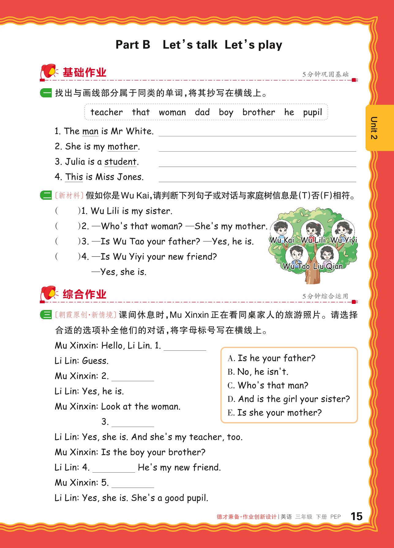 2024春下册三年级英语人教PEP版 Unit 2—Part B Let’s talk Let’s play