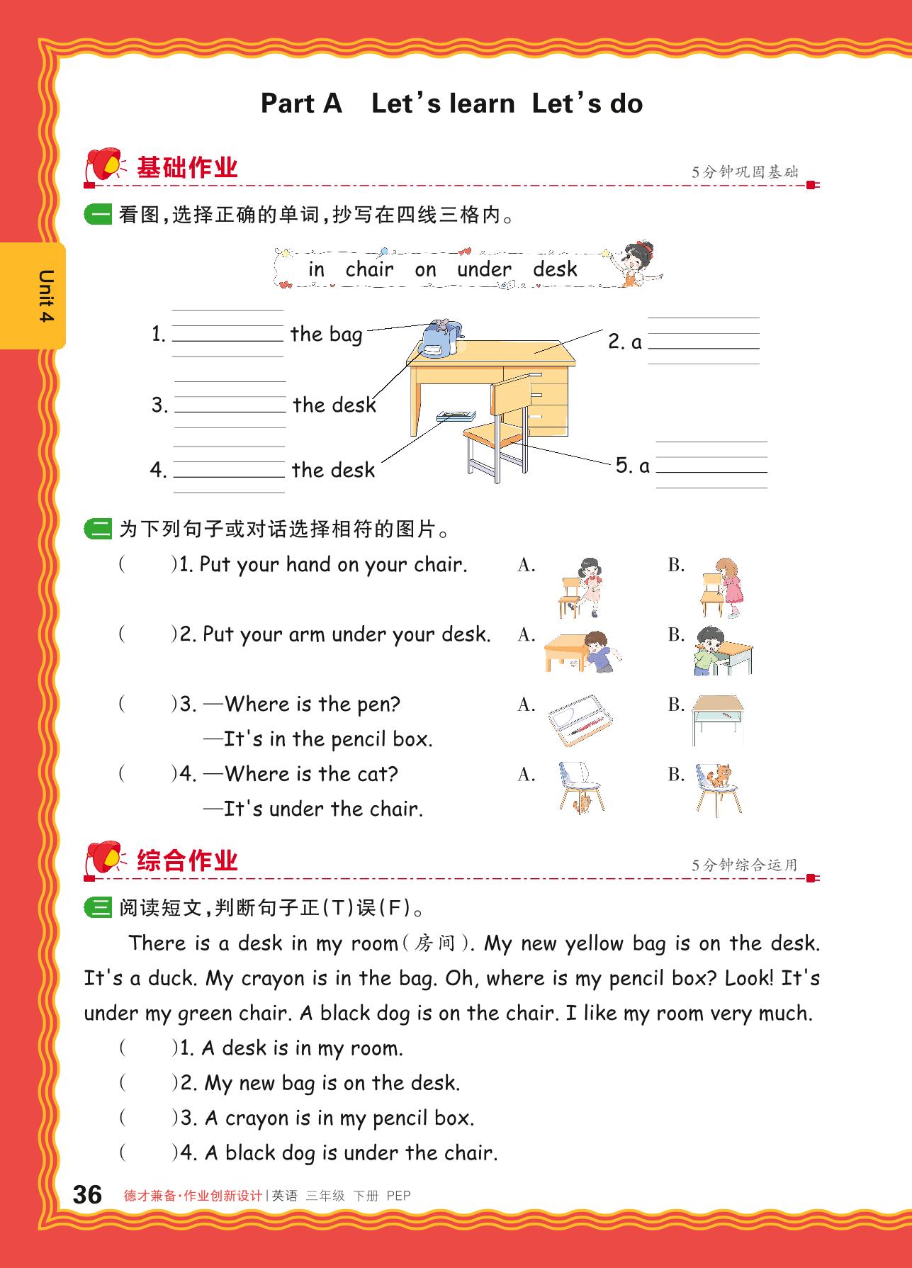 2024春下册三年级英语人教PEP版 Unit 4—Part A Let’s learn Let’s do