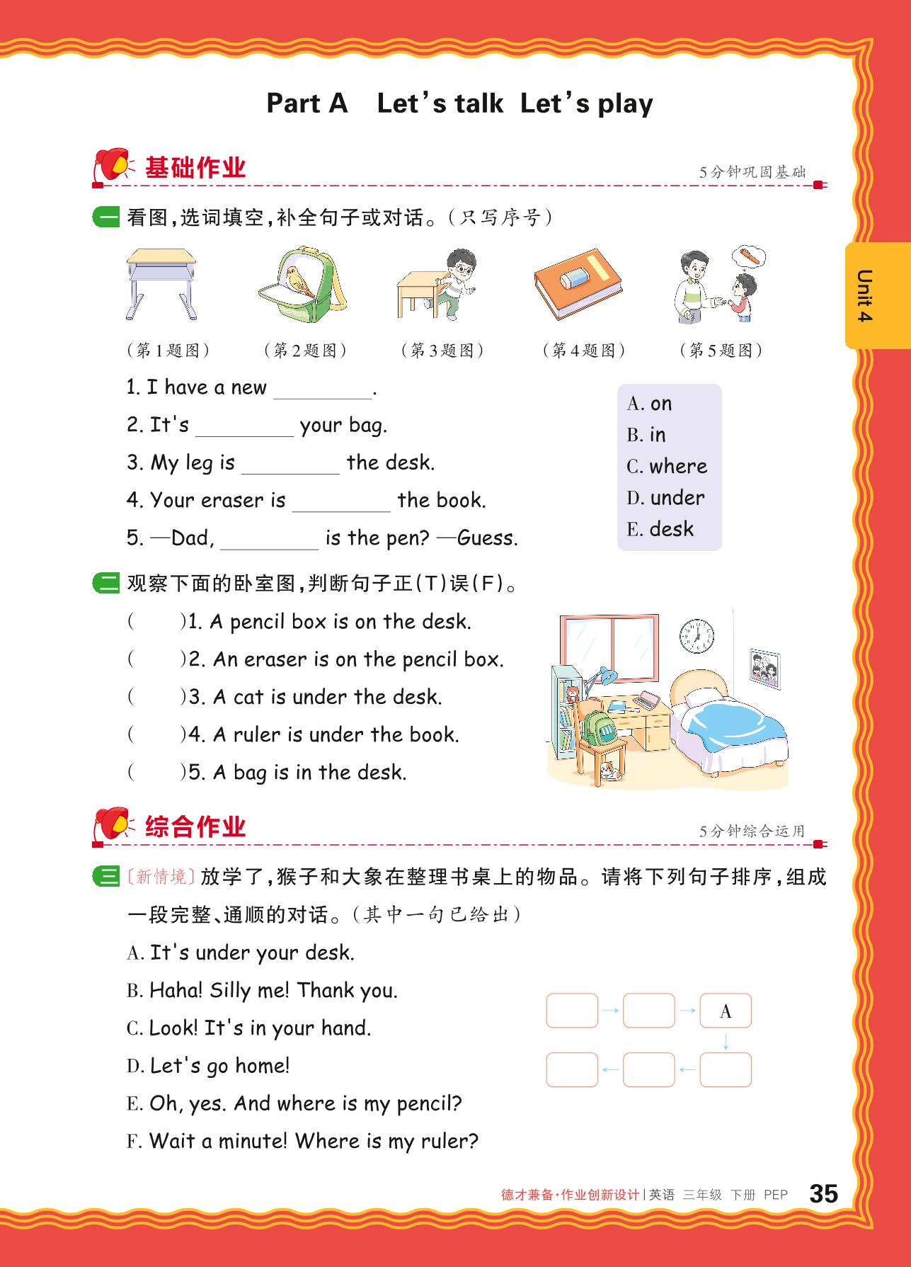 2024春下册三年级英语人教PEP版 Unit 4—Part A Let’s talk Let’s play