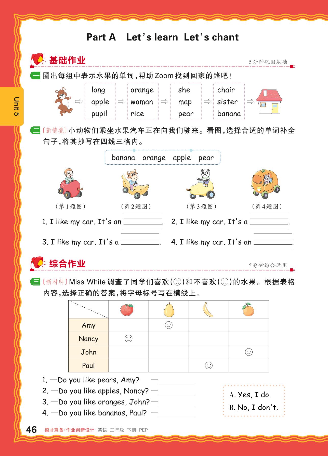 2024春下册三年级英语人教PEP版 Unit 5 Part A Let’s learn Let’s chant
