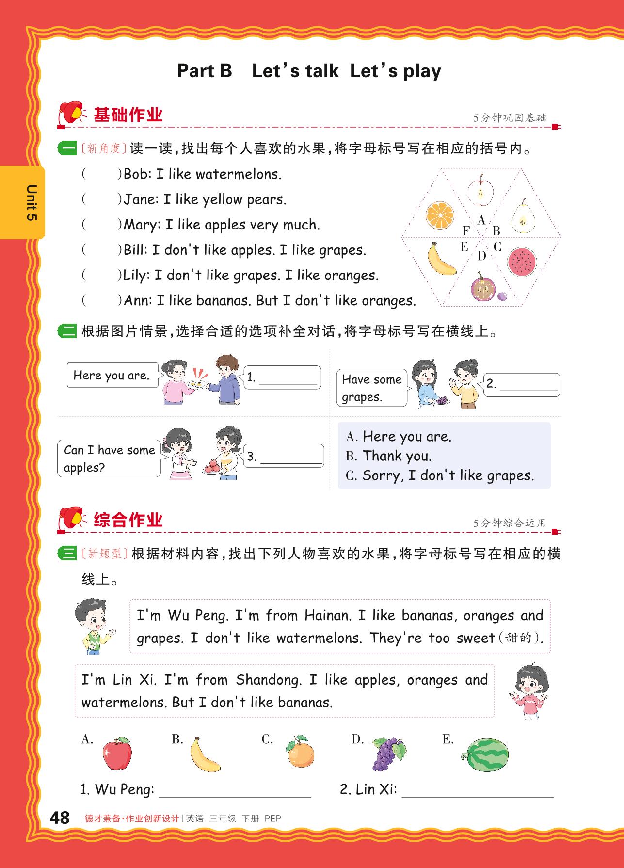 2024春下册三年级英语人教PEP版 Unit 5—Part B Let’s talk Let’s play