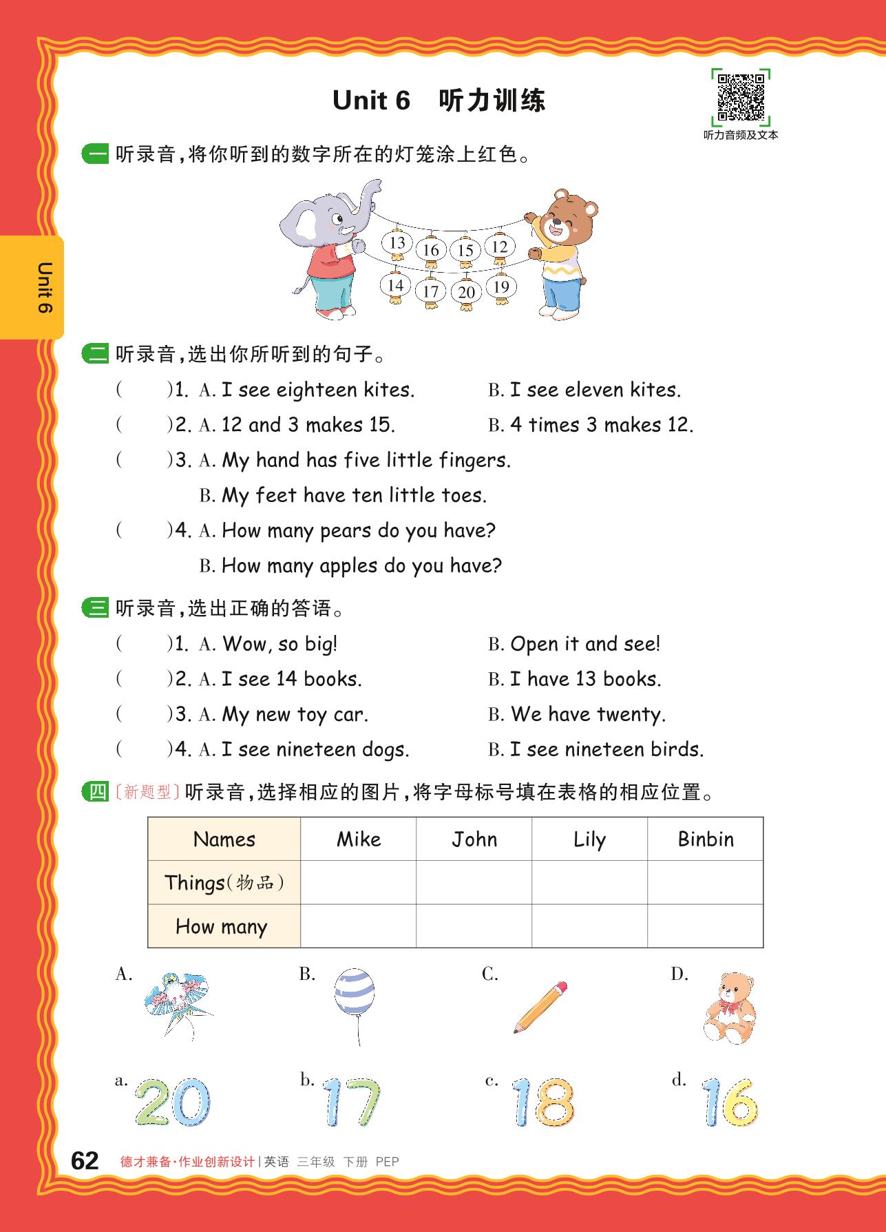 2024春下册三年级英语人教PEP版 Unit 6 听力训练