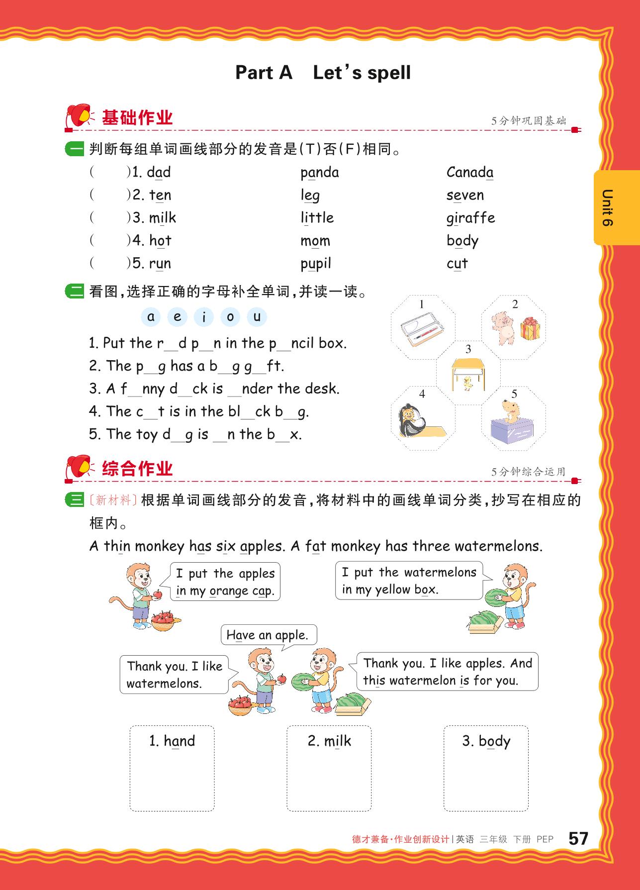 2024春下册三年级英语人教PEP版 Unit 6—Part A Let’s spell