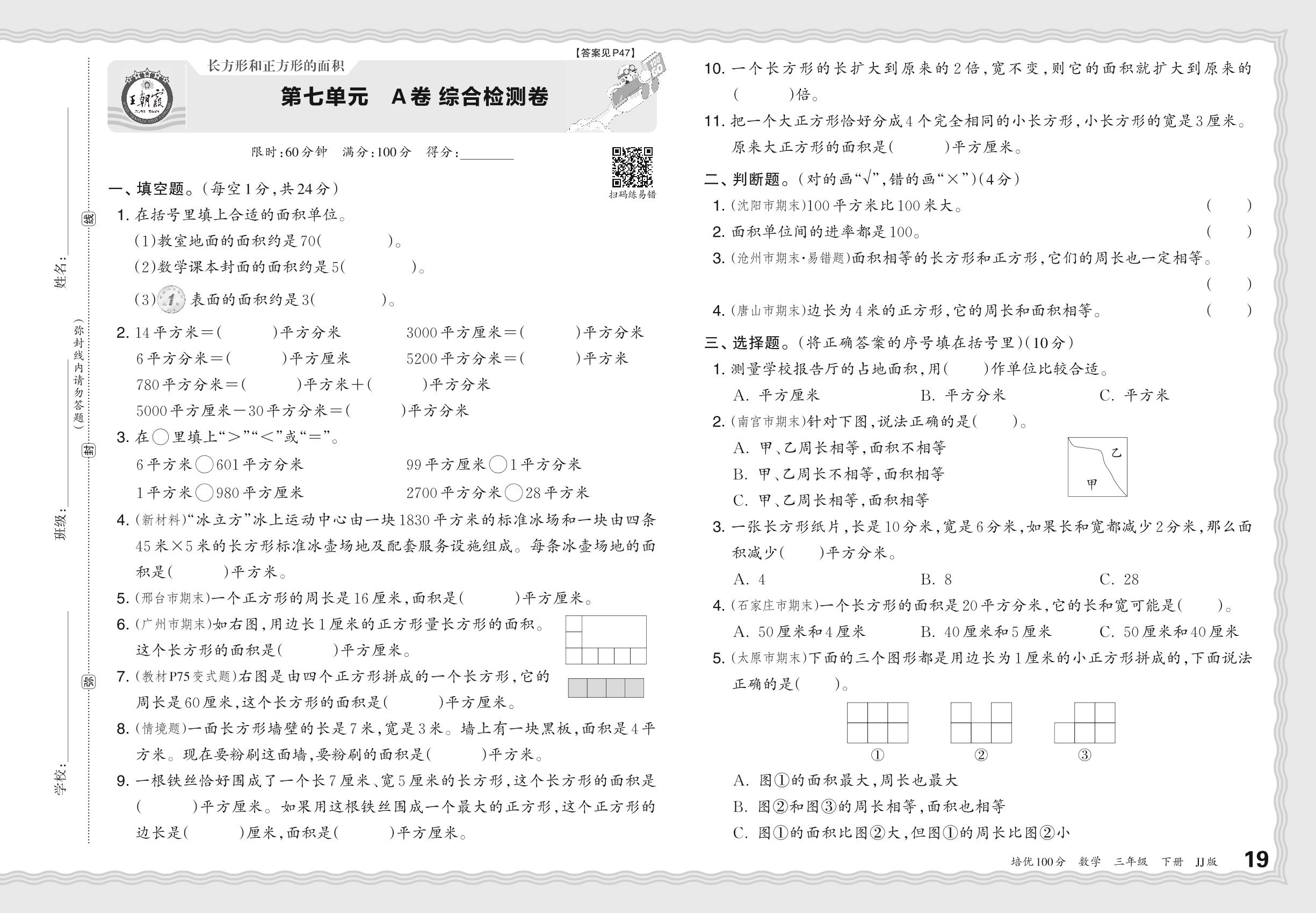2024春下册三年级数学冀教版 第七单元 A卷 综合检测卷