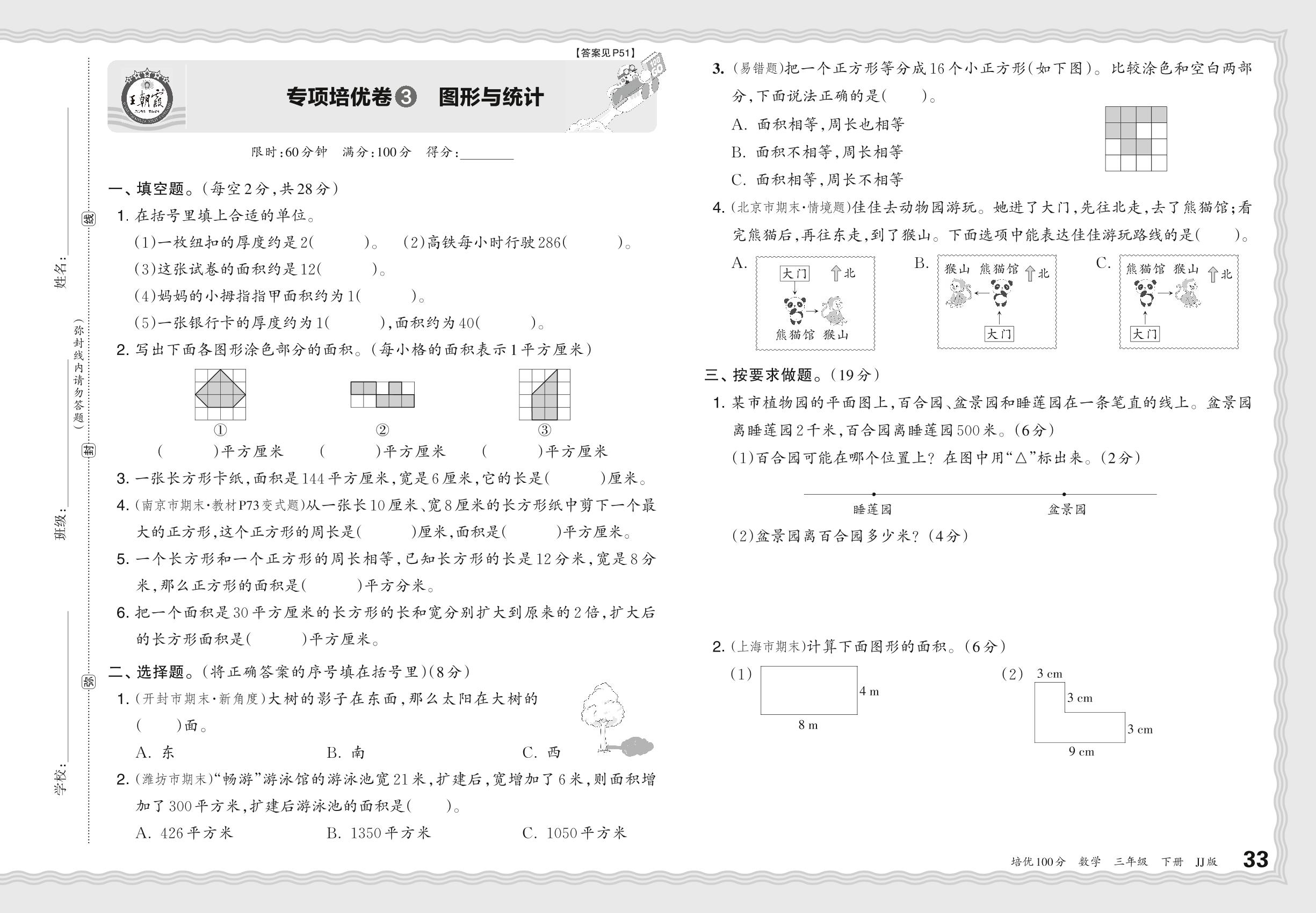 三年级数学冀教版下册专项卷