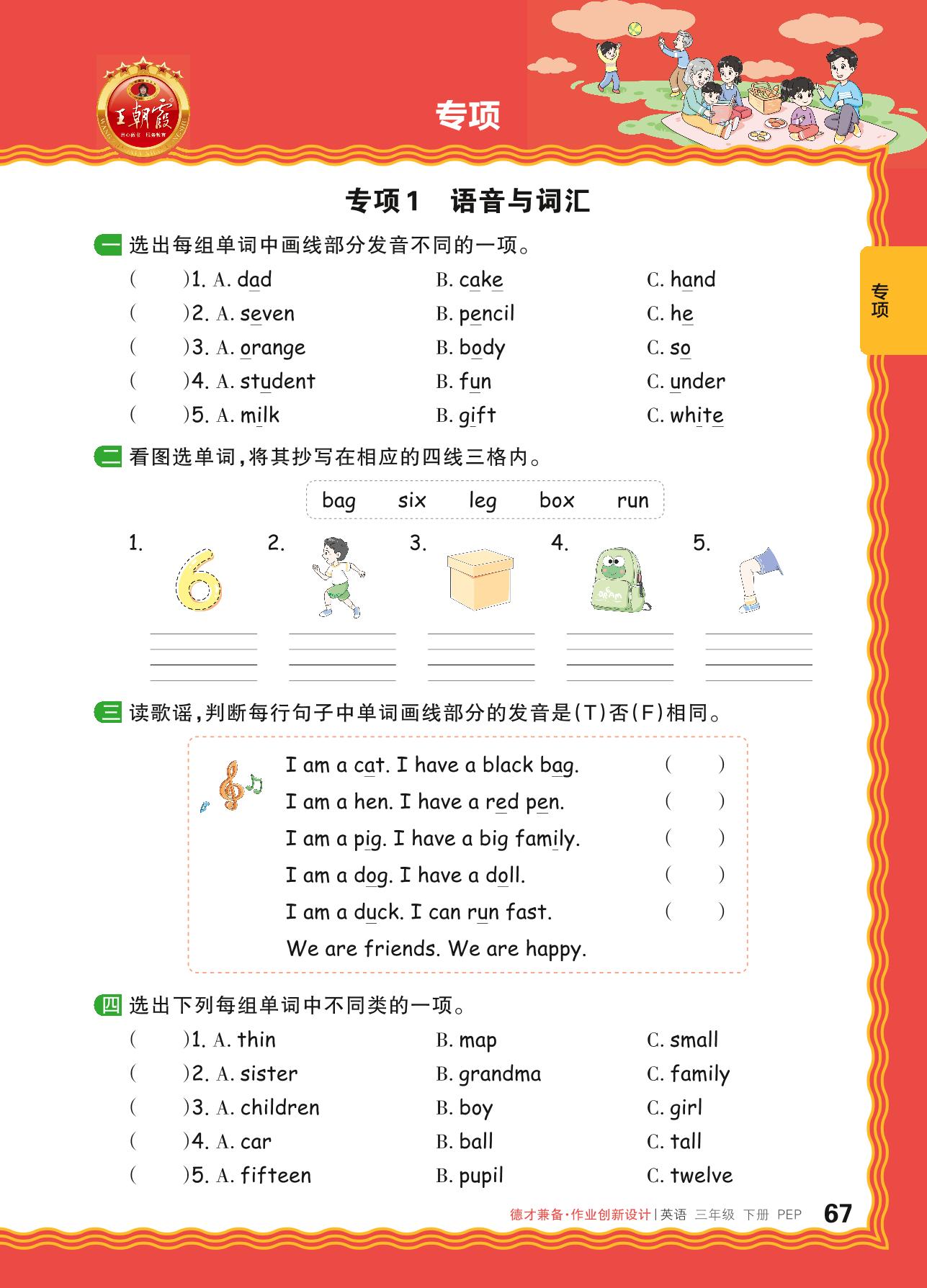 2024春下册三年级英语人教PEP版 期末专项卷DC版·语音与词汇【1】