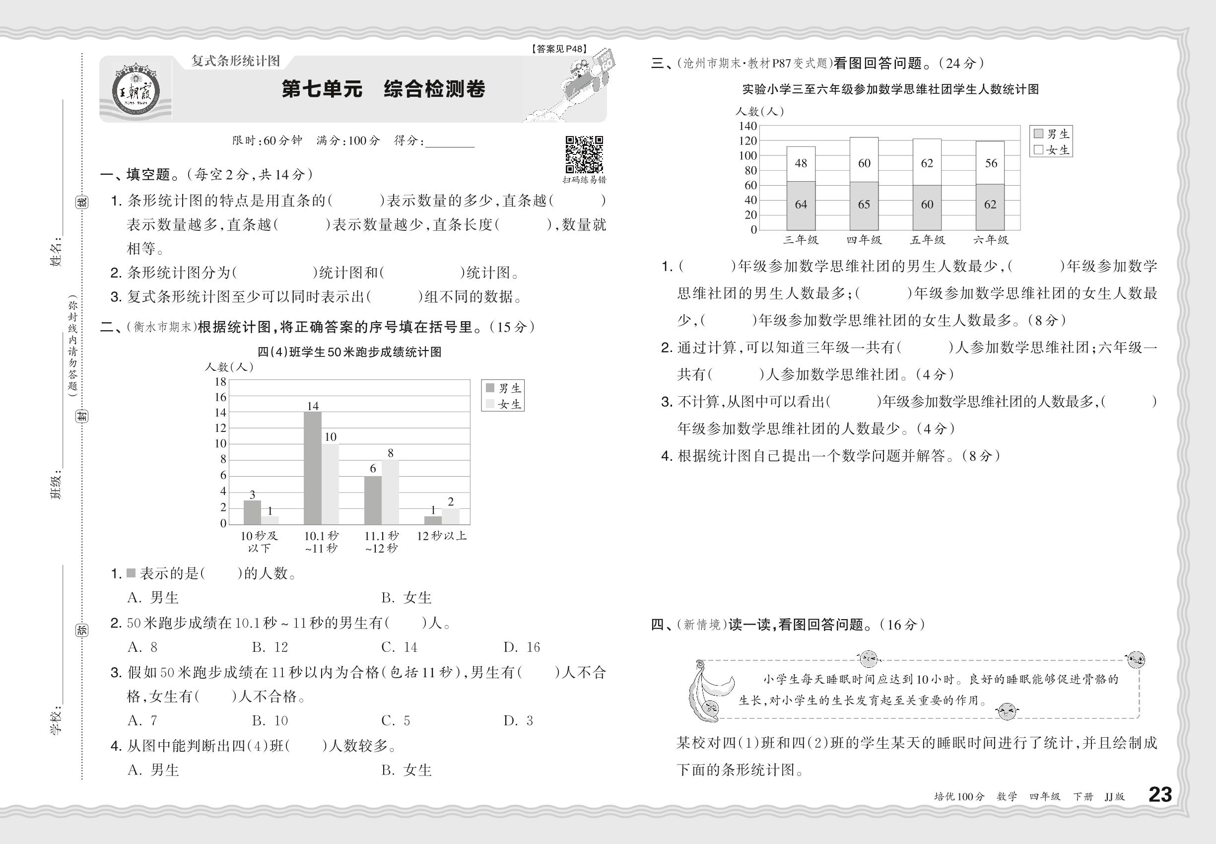 2024春下册四年级数学冀教版 第七单元 综合检测卷
