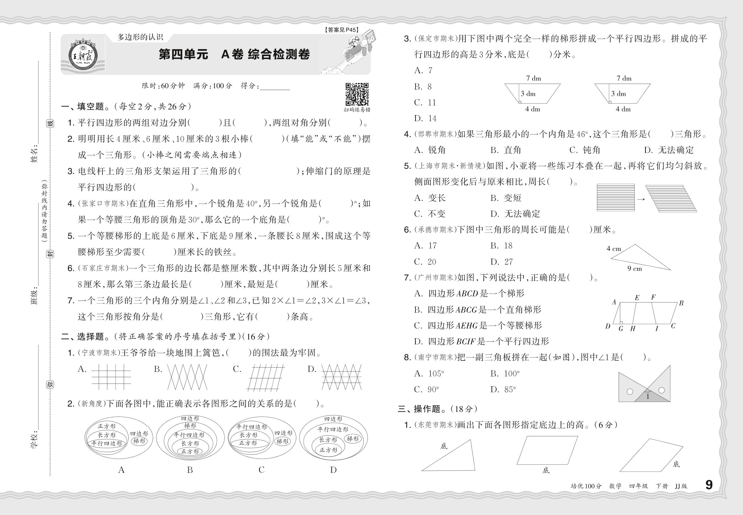 四年级数学冀教版下册单元卷