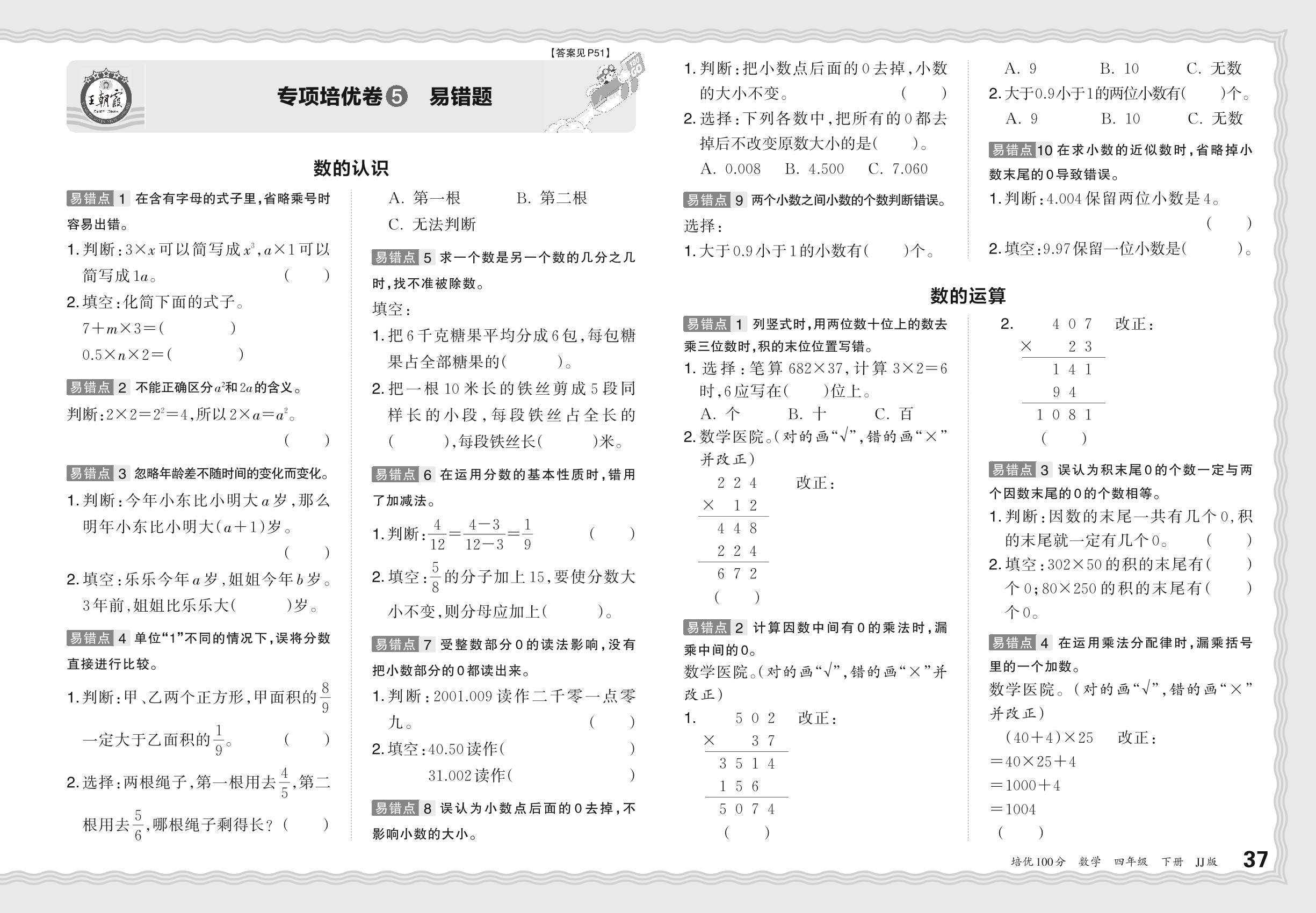 2024春下册四年级数学冀教版 期末专项卷PY版·易错题【5】
