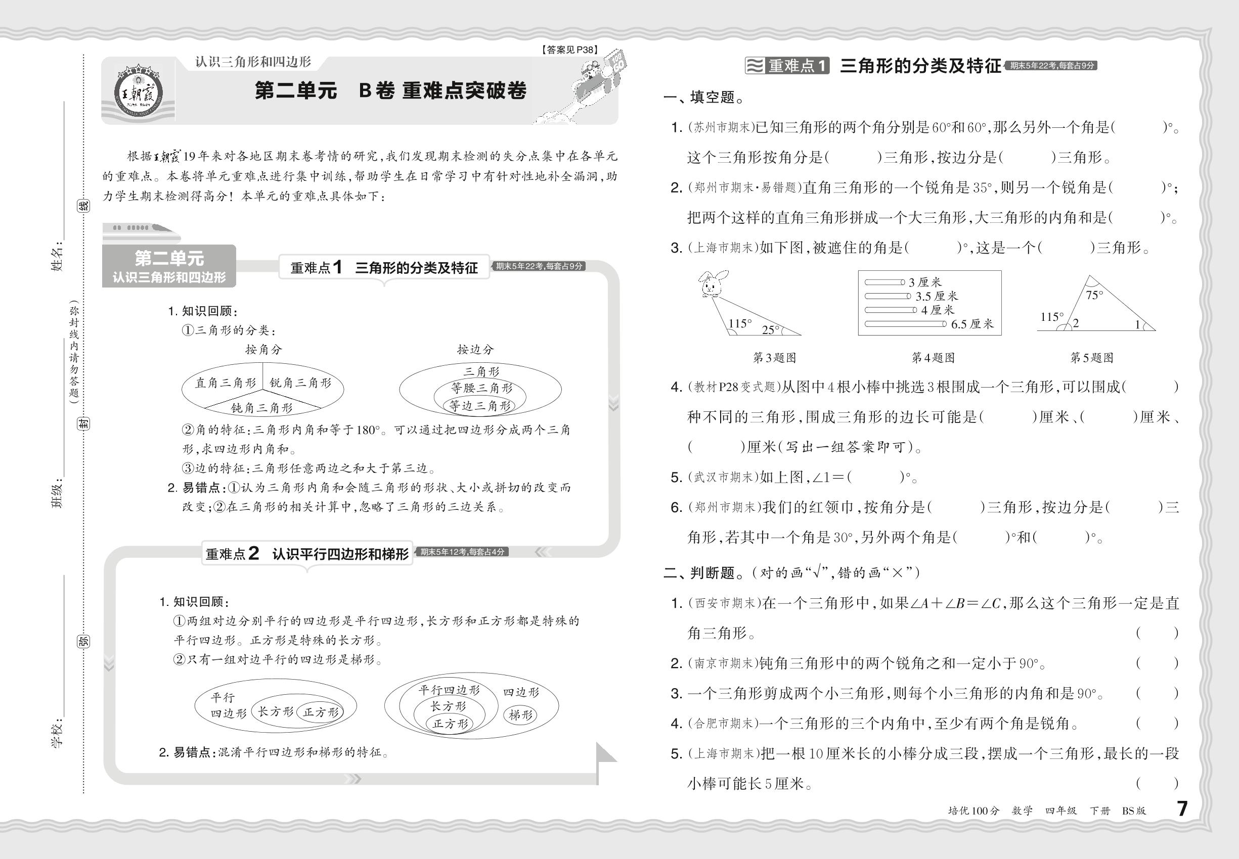 2024春下册四年级数学北师版 第二单元 B卷 重难点突破卷