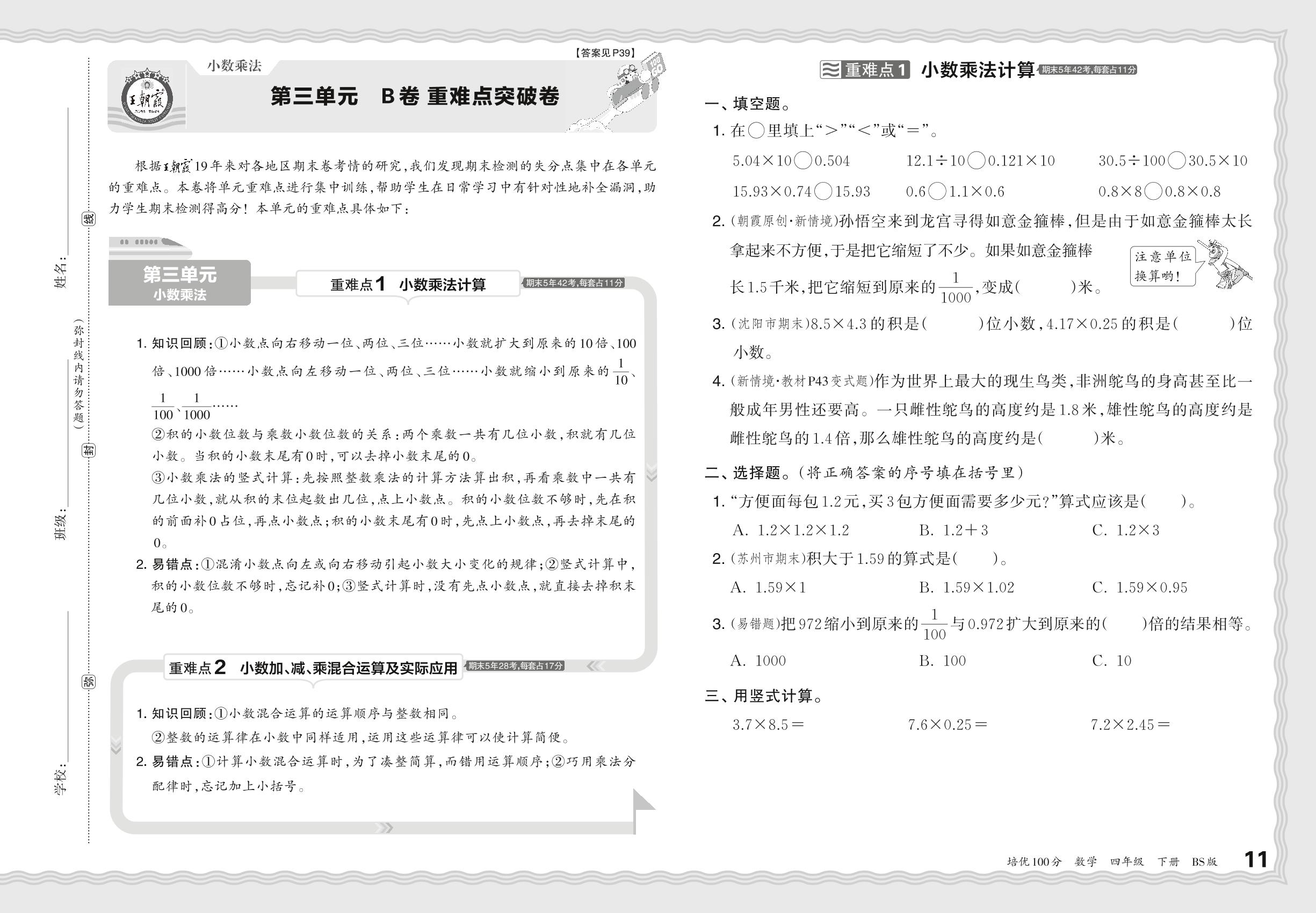 2024春下册四年级数学北师版 第三单元 B卷 重难点突破卷