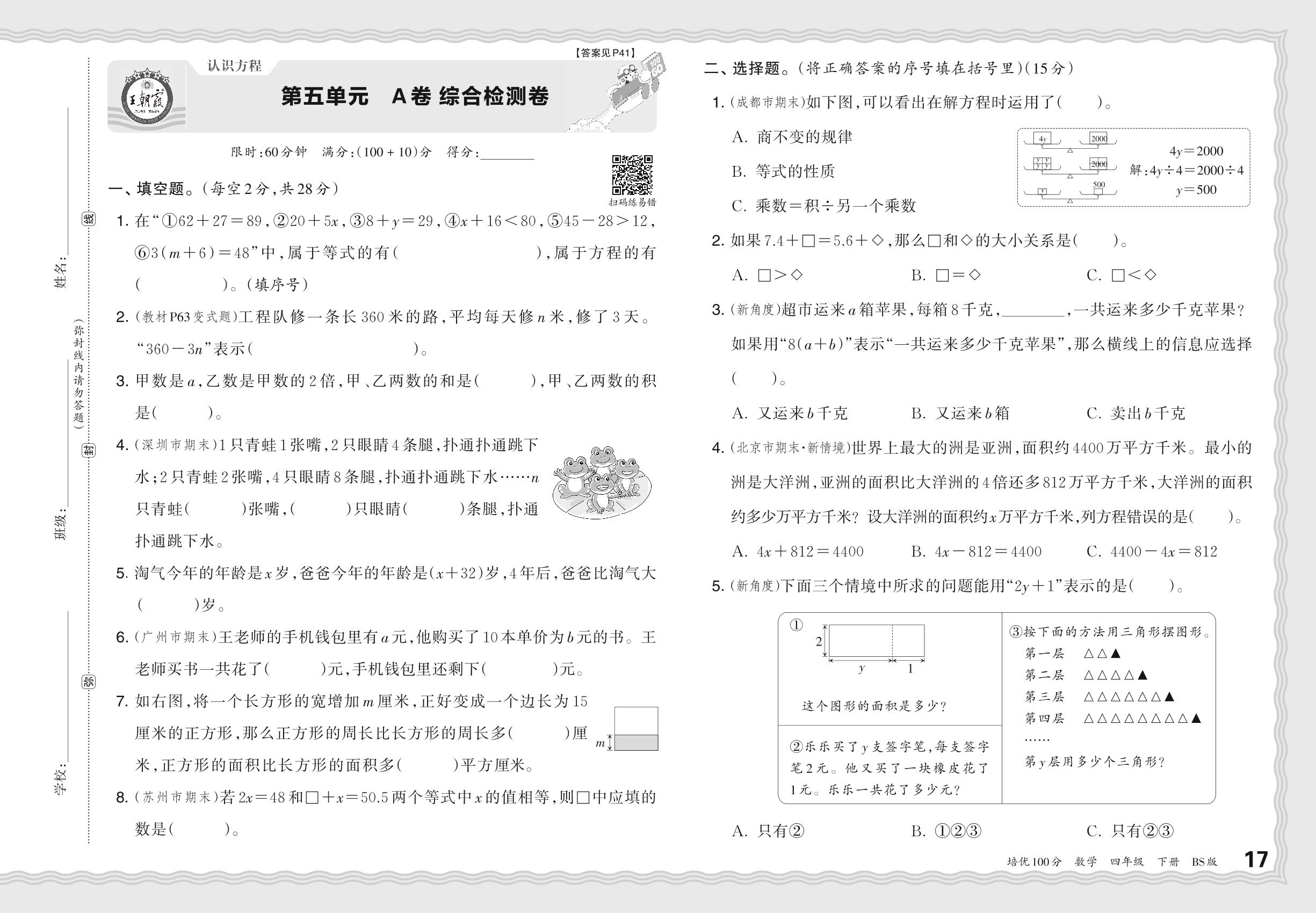 2024春下册四年级数学北师版 第五单元 A卷 综合检测卷