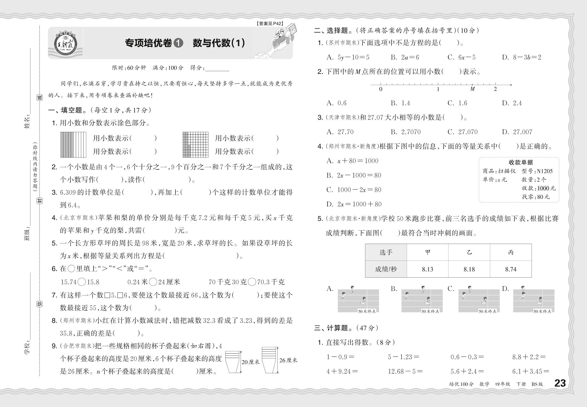 2024春下册四年级数学北师版 期末专项卷PY版·数与代数(1)【1】