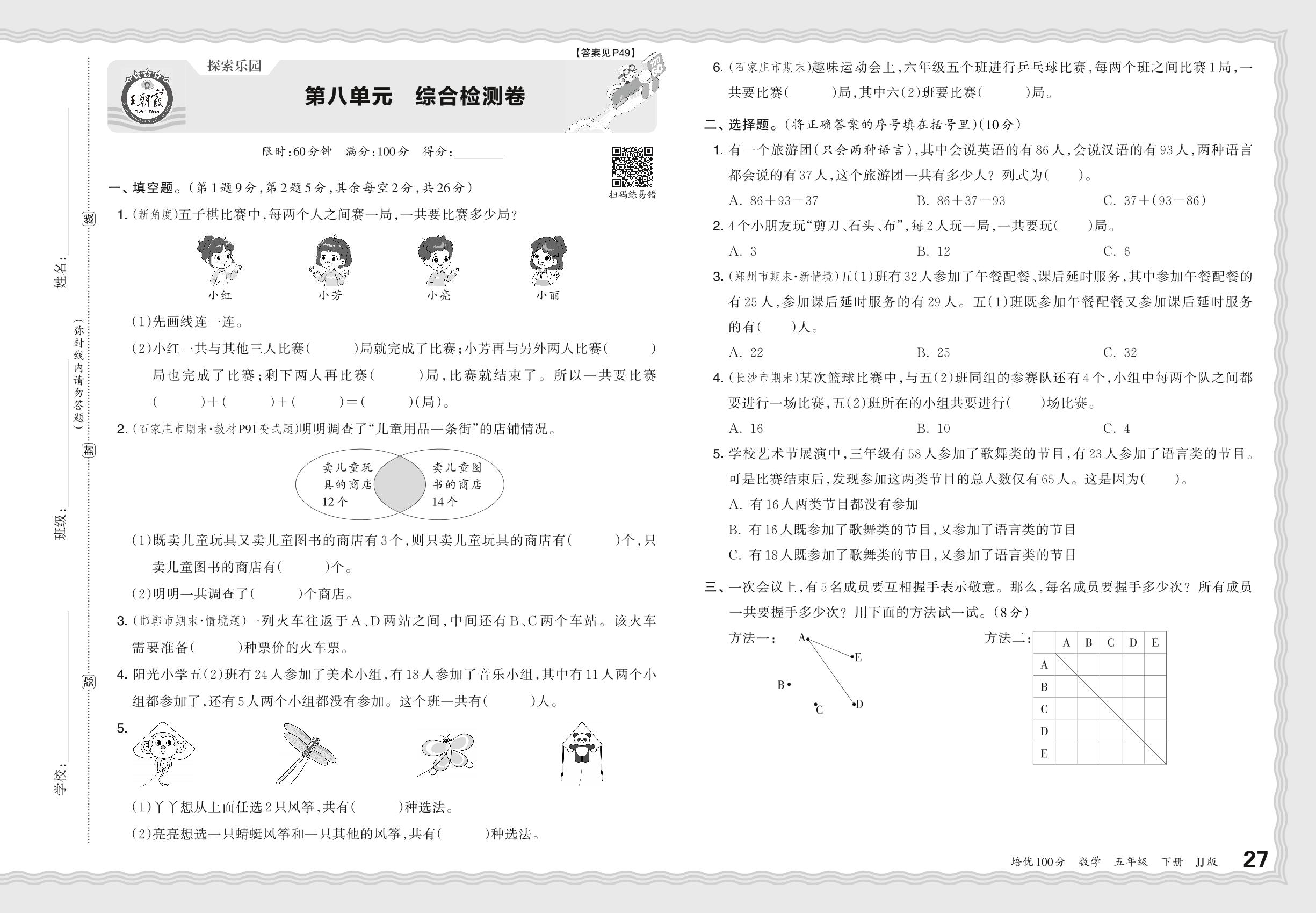 2024春下册五年级数学冀教版 第八单元 综合检测卷