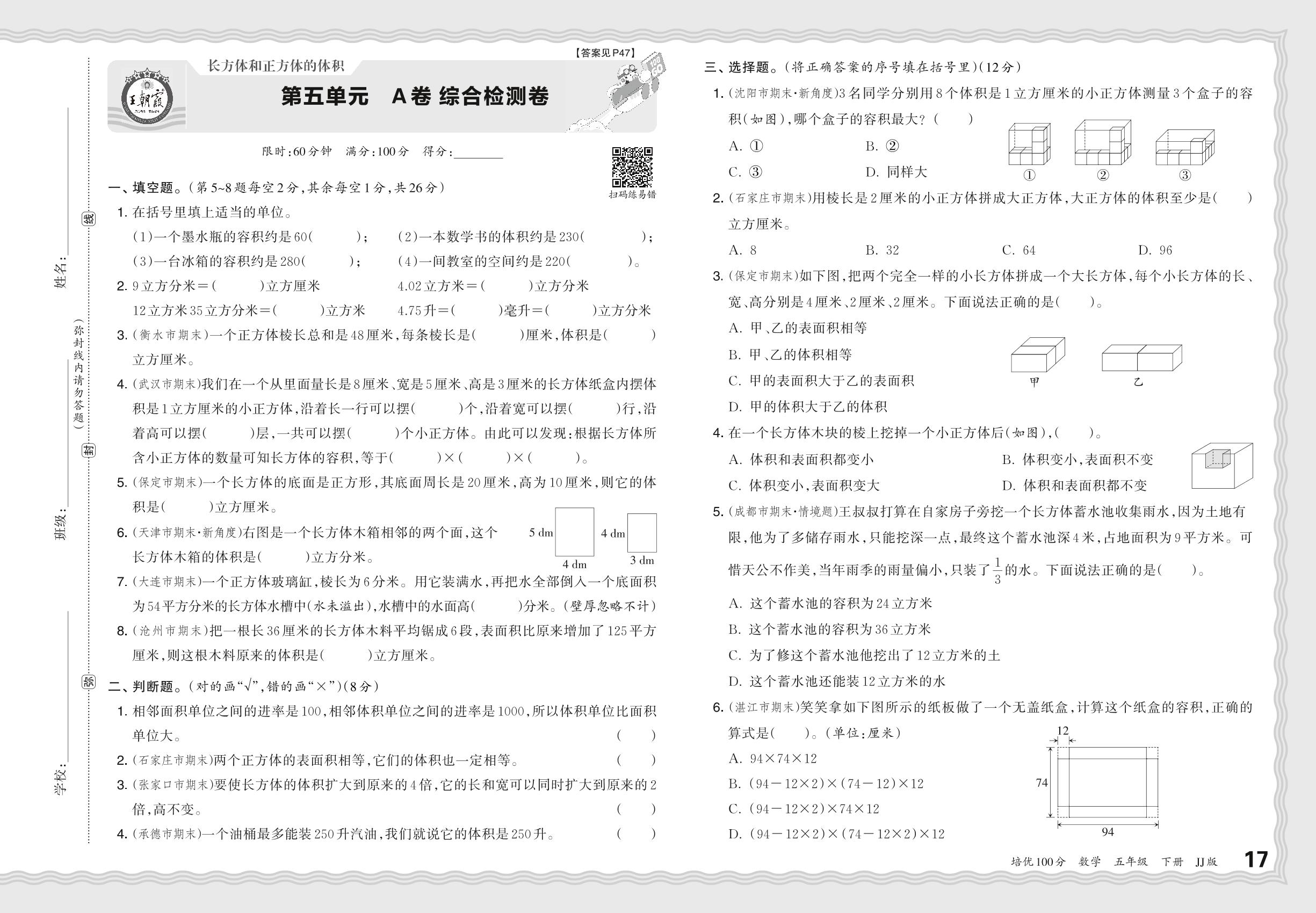2024春下册五年级数学冀教版 第五单元 A卷 综合检测卷