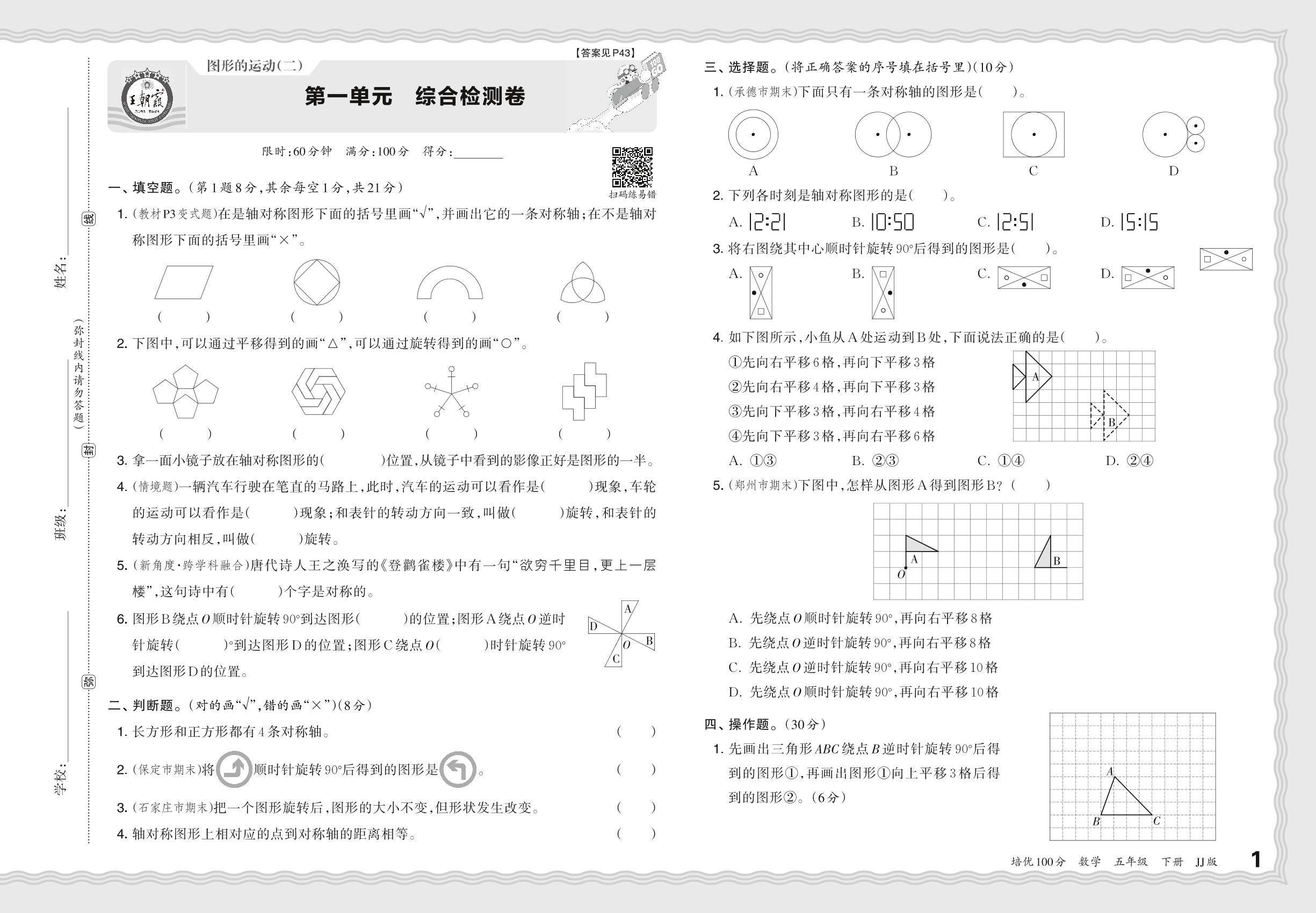 2024春下册五年级数学冀教版 第一单元 综合检测卷