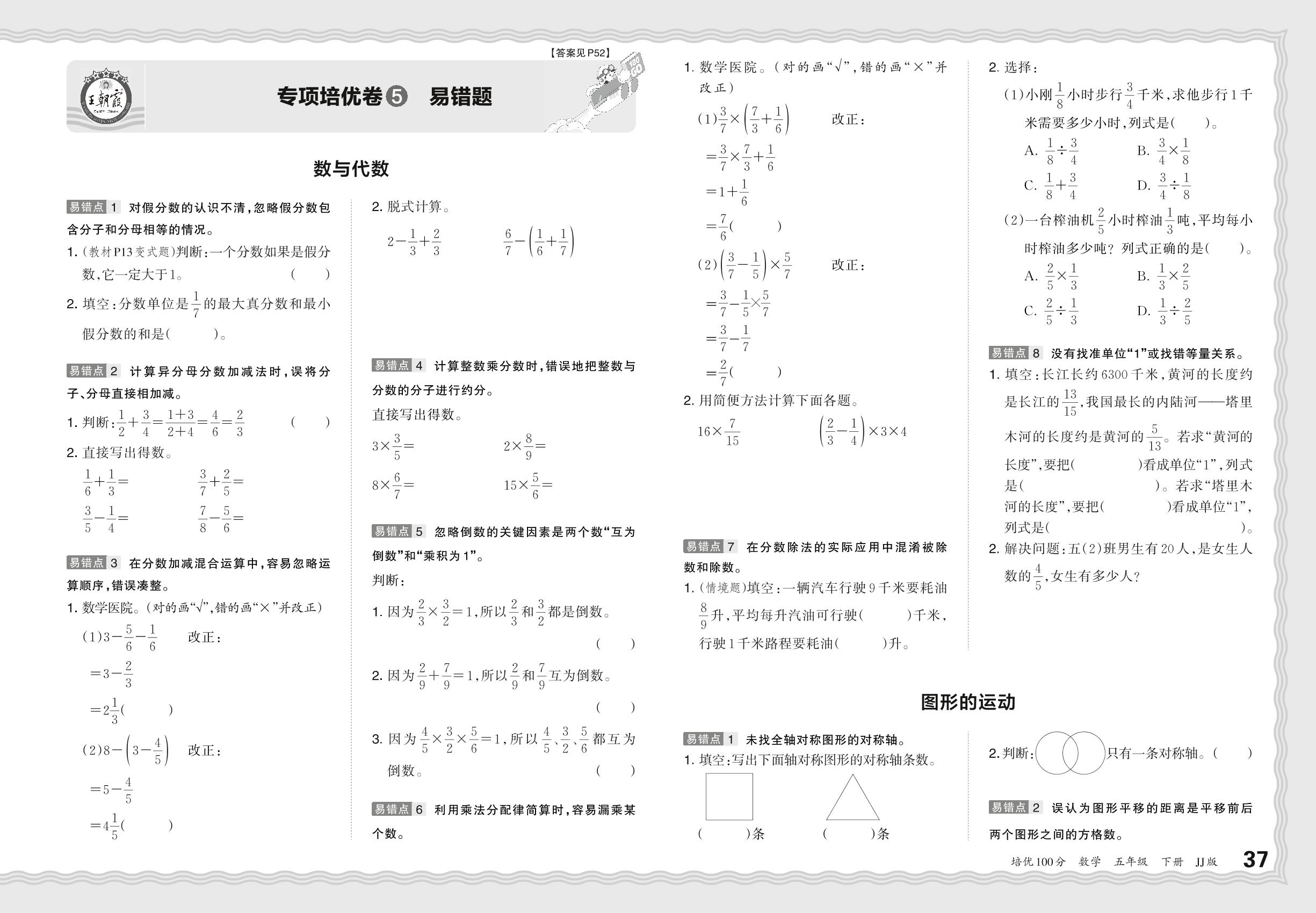 2024春下册五年级数学冀教版 期末专项卷PY版·易错题【5】