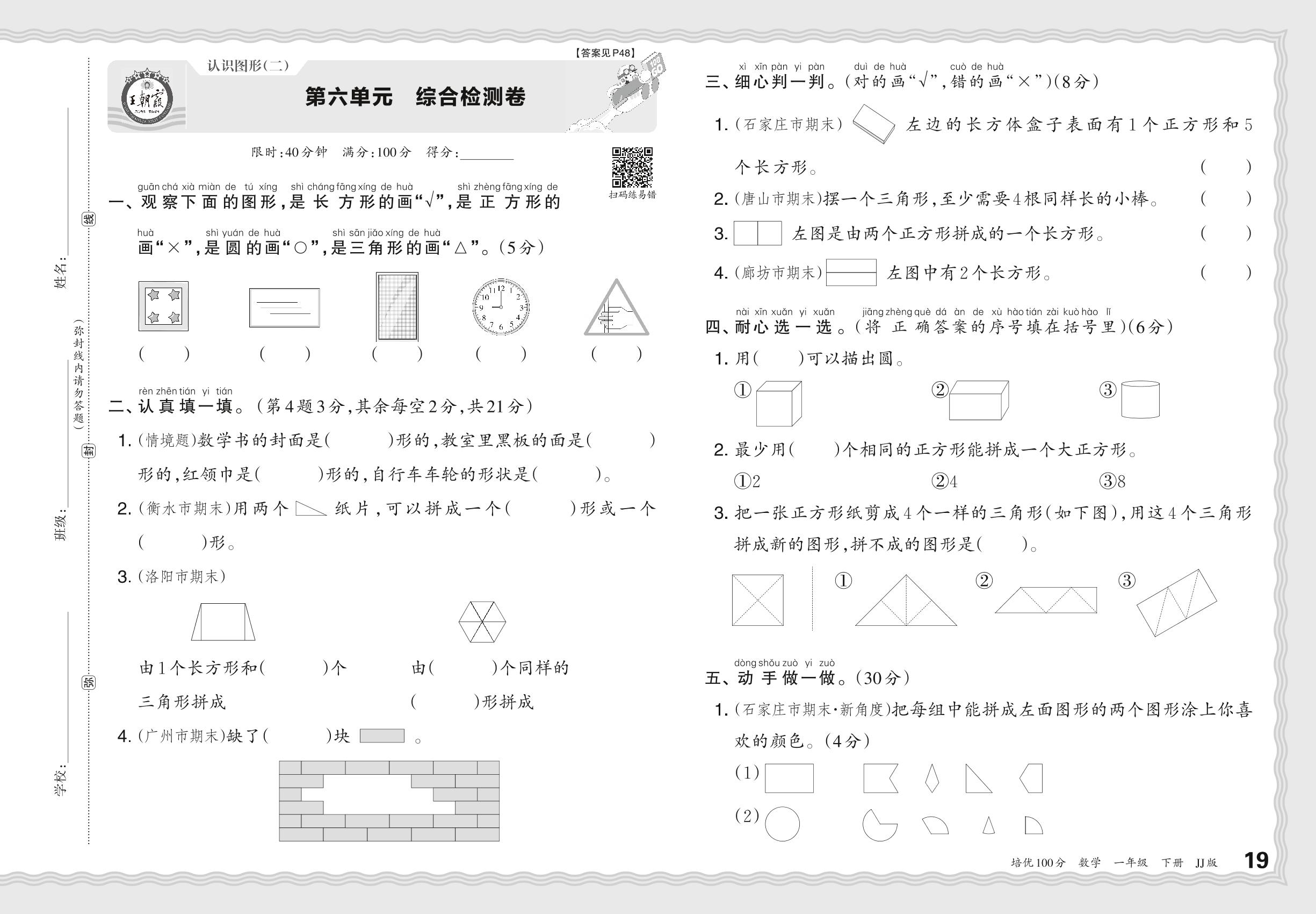 2024春下册一年级数学冀教版 第六单元 综合检测卷