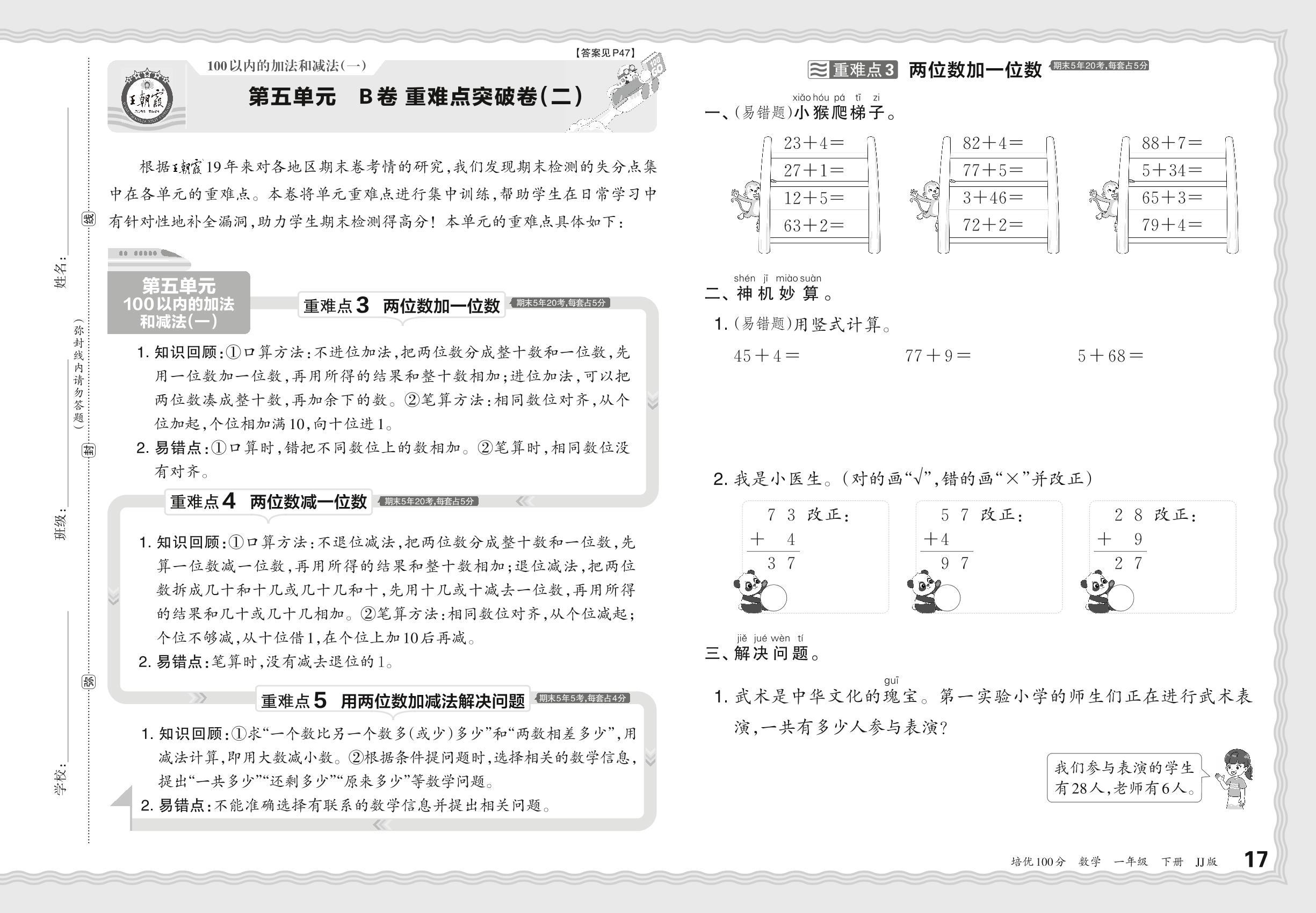 2024春下册一年级数学冀教版 第五单元 B卷 重难点突破卷(二)